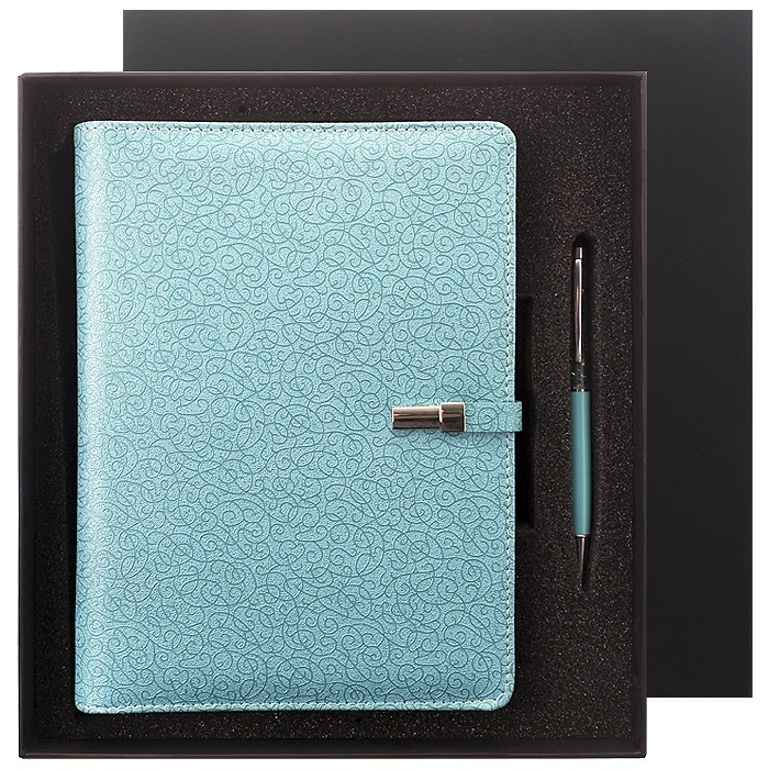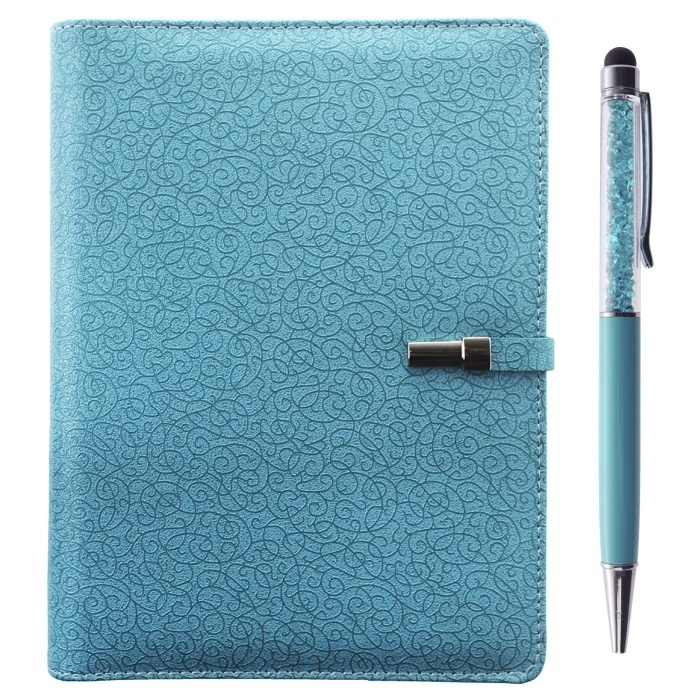 Ежедневник на кольцах А5 + ручка с камнями и стилусом. Подарочный набор.Бирюзовый