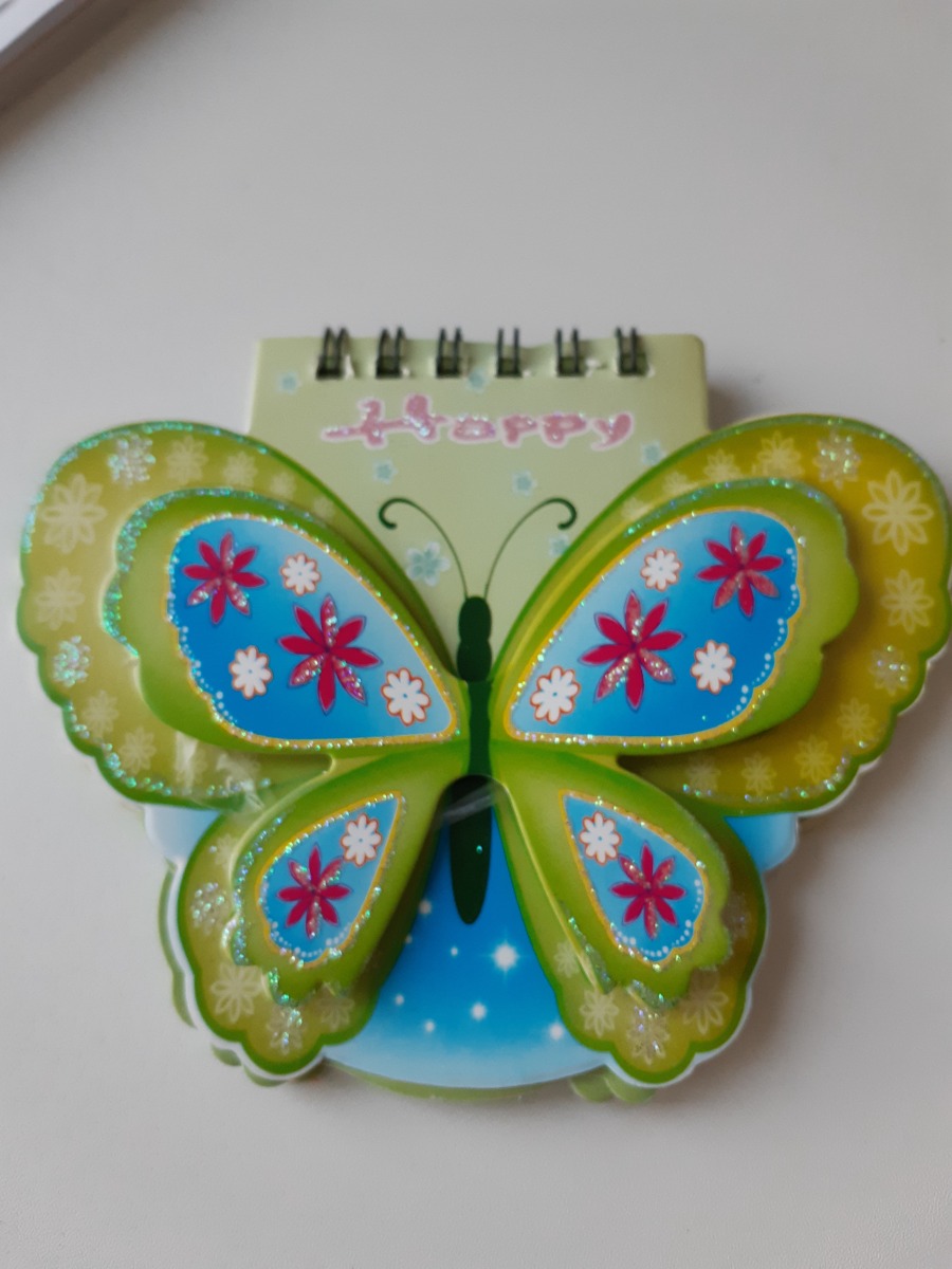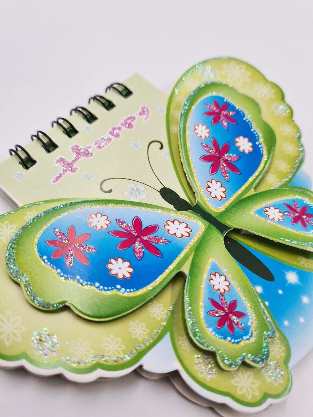 Блокнот на спирали с фигурной высечкой Бабочка, зелёная, А7 50 листов, "Darvish", DV-7101