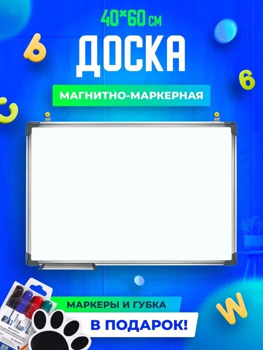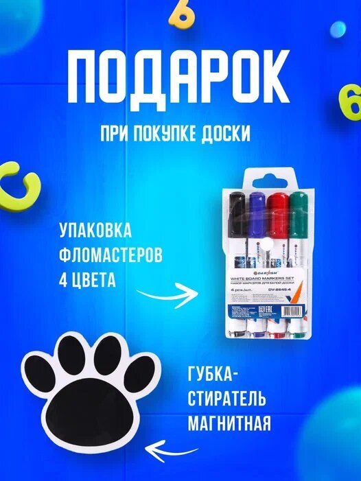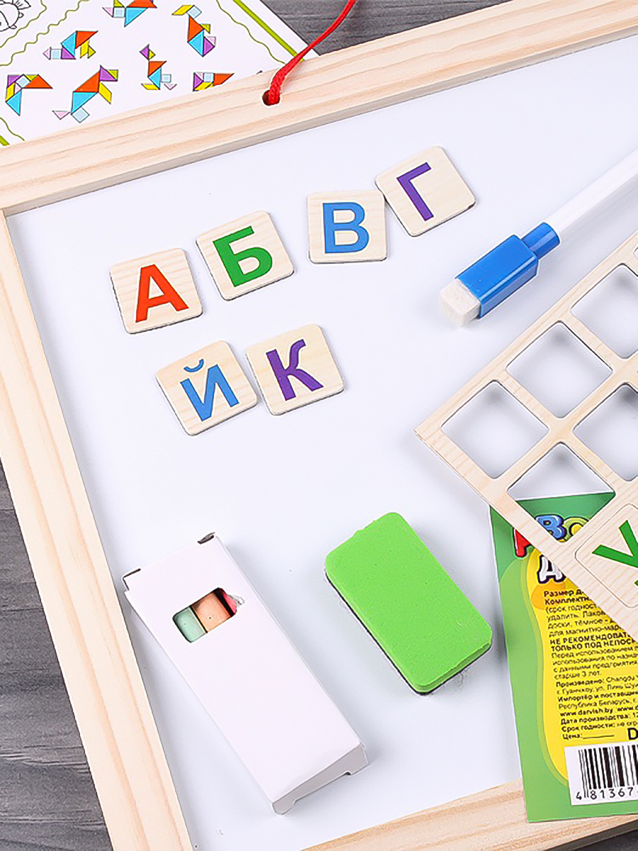 Доска для рисования двусторонняя (27х37 см) + мелки + губка + магниты + маркер / Darvish