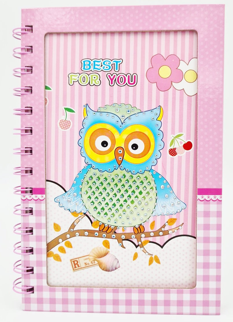 Блокнот на спирали "Сова" со стразами, светло-розовый, 12,5*19 см 60 листов, "Darvish", DV-9673