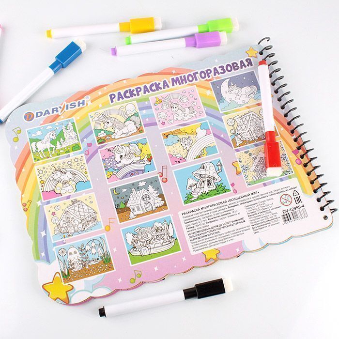 Раскраска многоразовая Darvish Волшебный мир, 8 маркеров, DV-12959-4