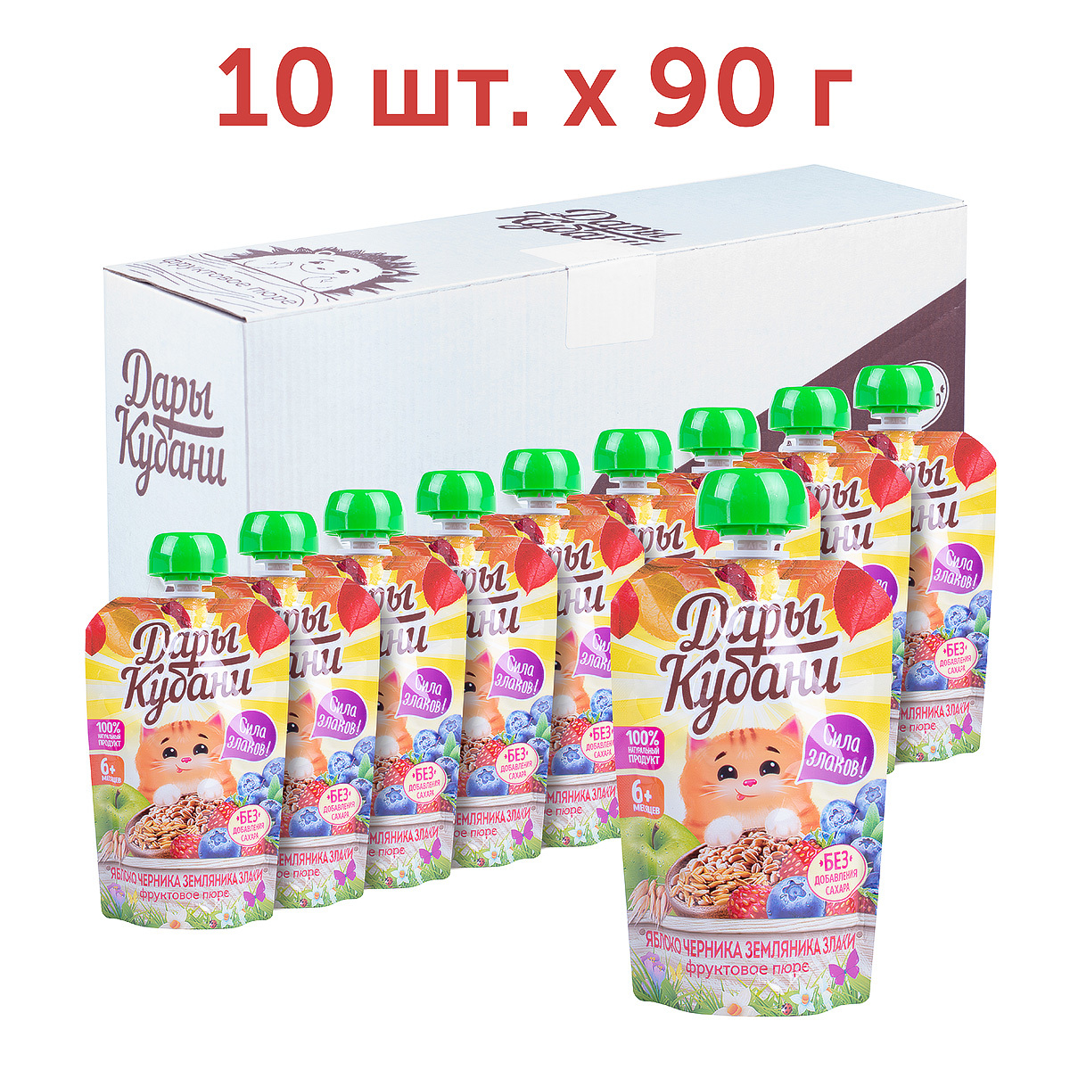 Пюре детское из яблок, черники и земляники со злаками Дары Кубани 90г. ( 10 шт)