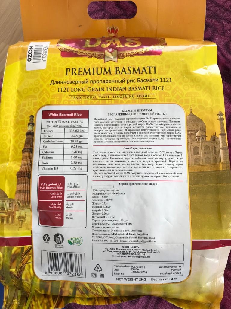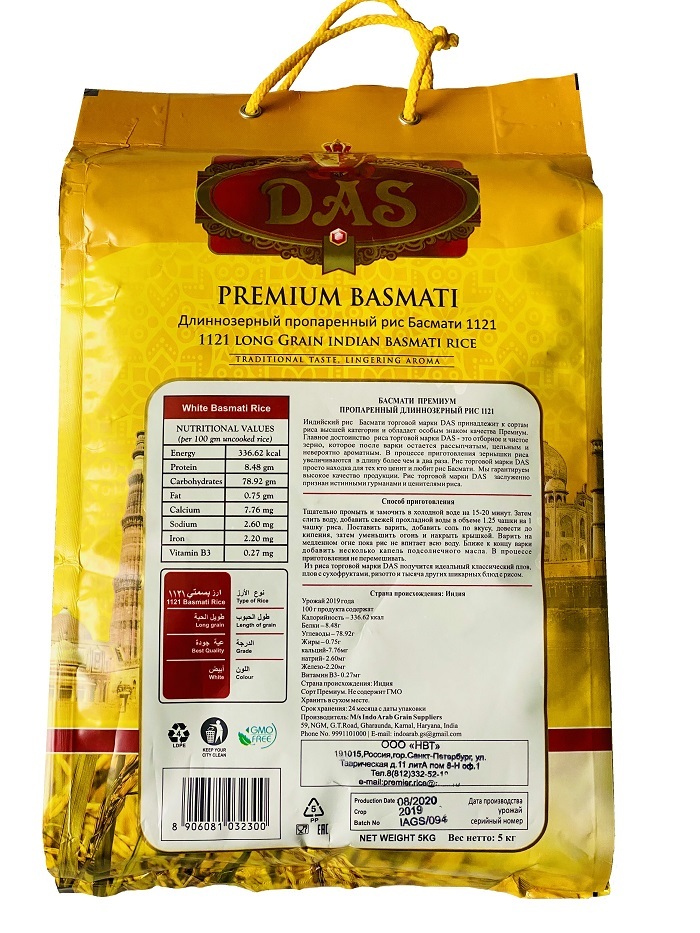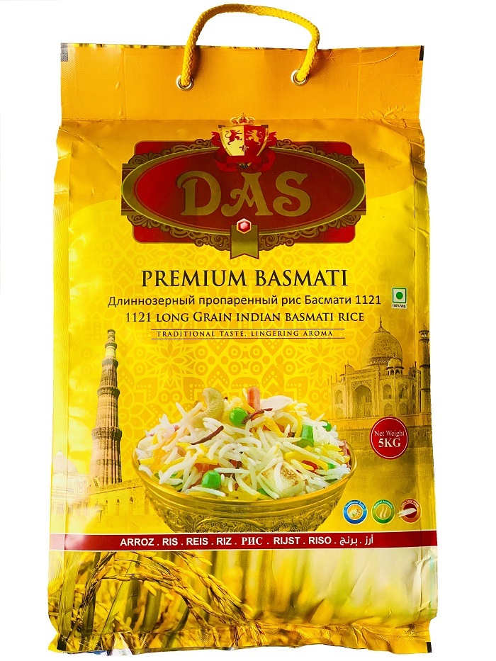 Рис индийский басмати DAS PREMIUM длиннозерный пропаренный для плова 5 кг (дой-пак)