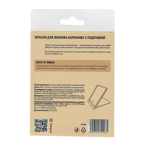 DECO. Зеркало для макияжа прямоугольное 11х9 см (с подставкой)