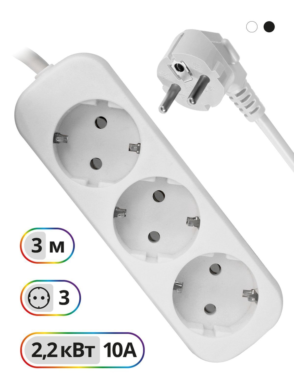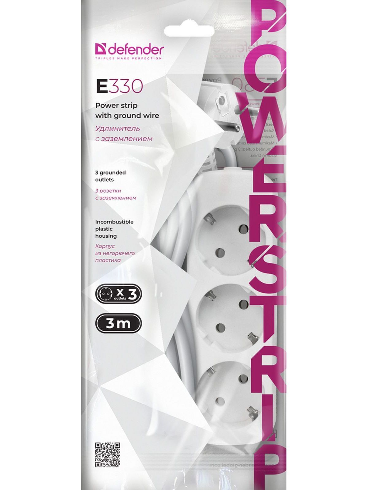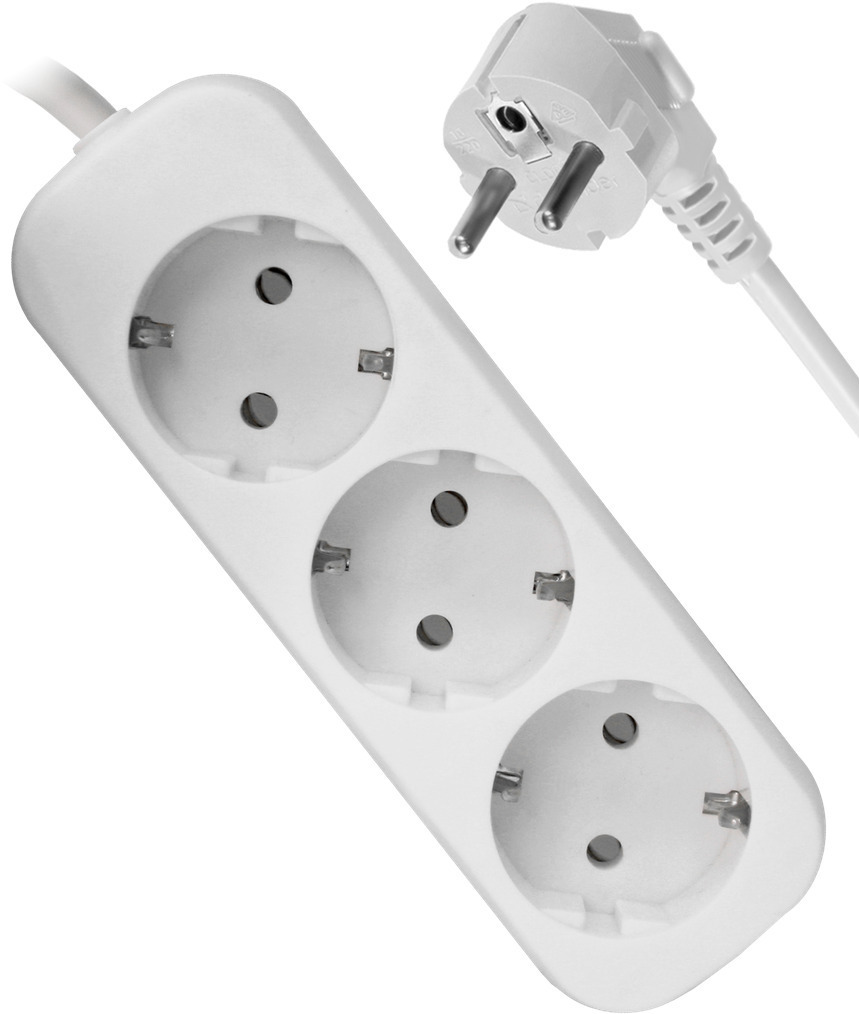 Удлинитель сетевой Defender E330, 3 розетки с заземлением, 3 метра, белый