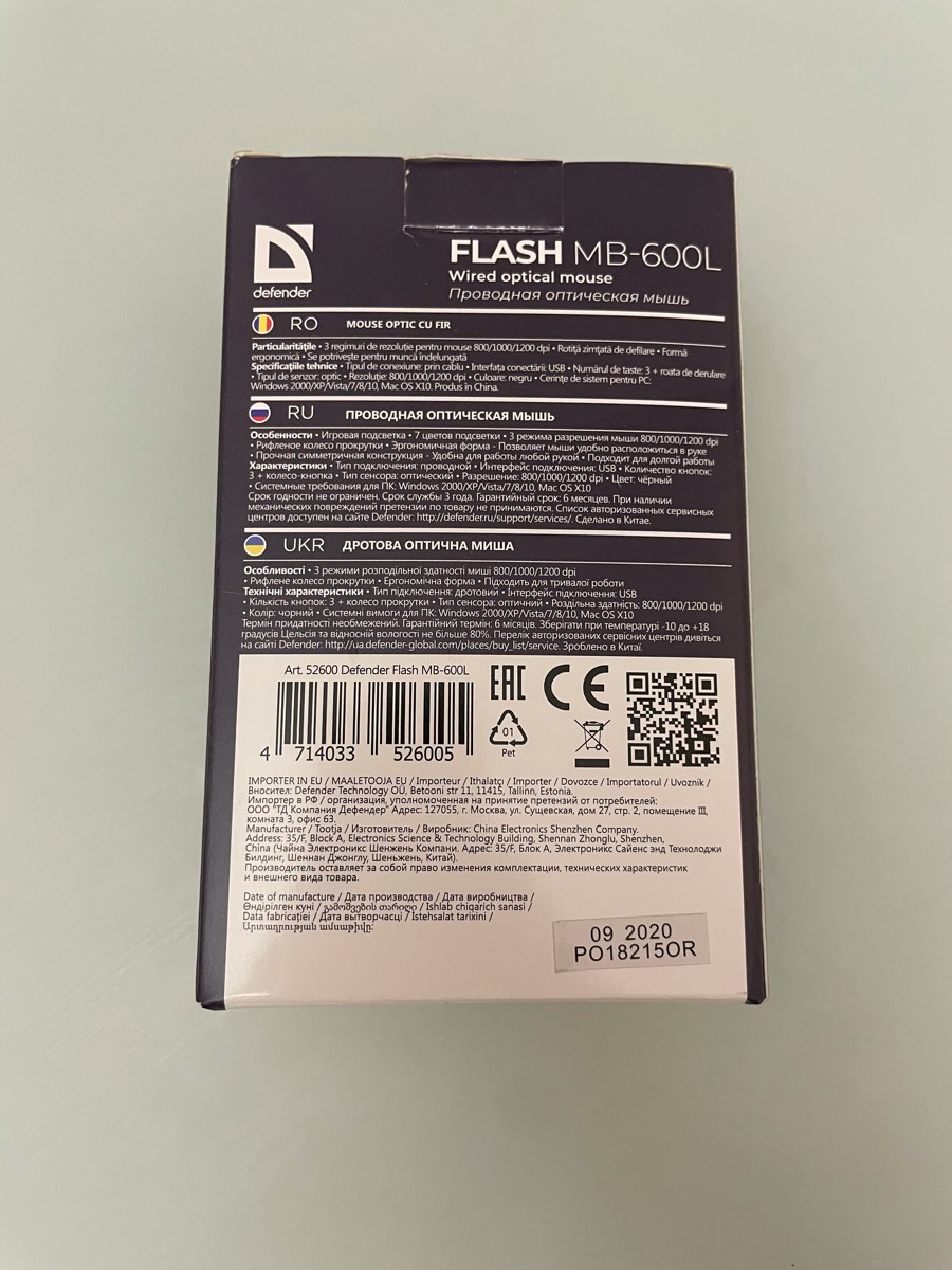 Игровая мышь проводная Defender Flash, черный