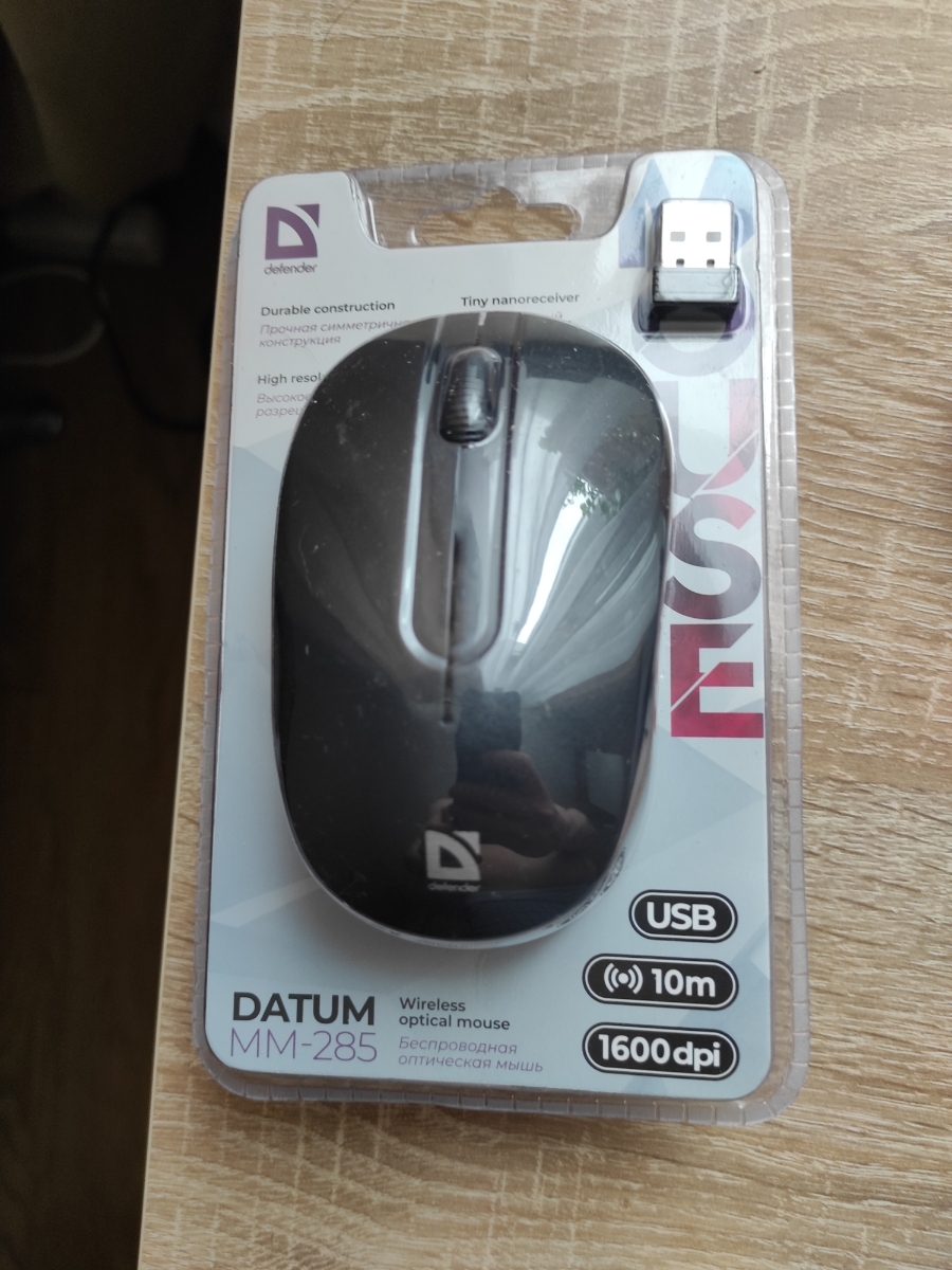 Беспроводная оптическая мышь Defender Datum MM-285 черный, 3 кнопки, 1600 dpi