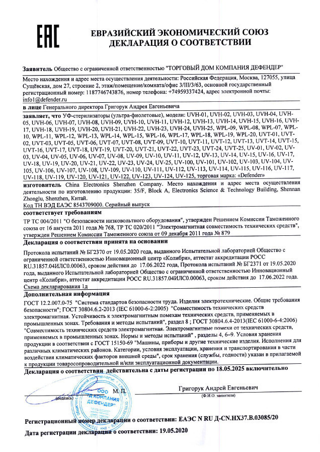 Ультрафиолетовая кварцевая бактерицидная лампа Defender UV-101, 40W + подвес + пульт ДУ