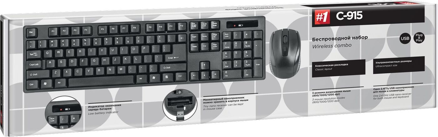 Набор клавиатура и мышь Defender #1 C-915 RU, черный, полноразмерный