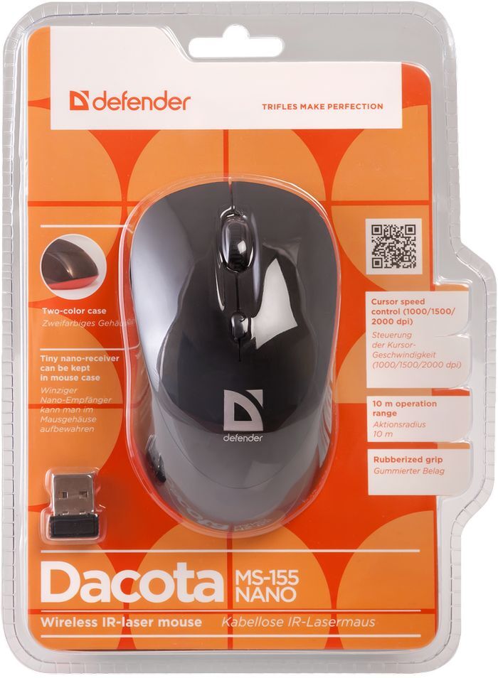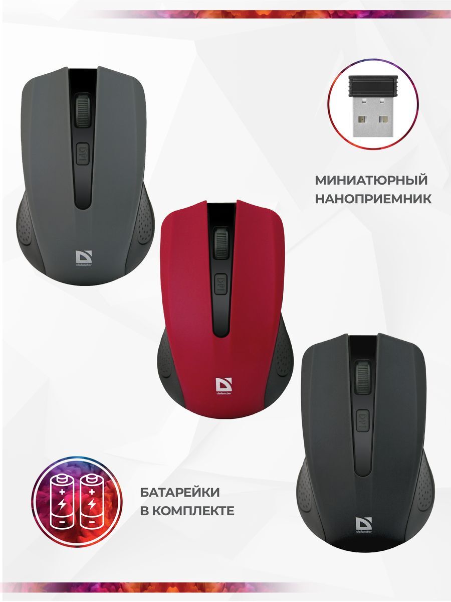 Мышь беспроводная Defender Dacota, лазерная, 4 кнопки, 2000 dpi, красный, черный