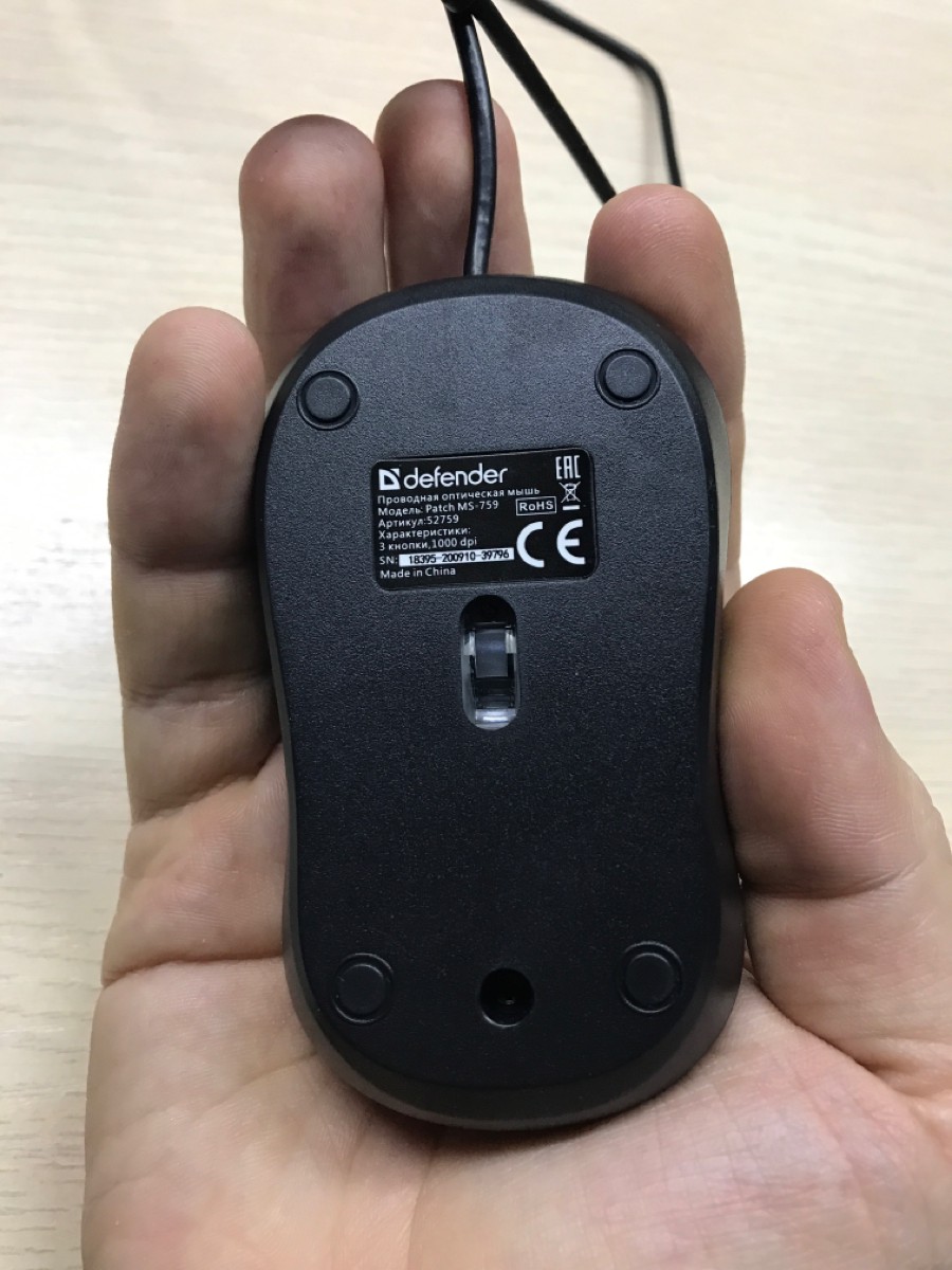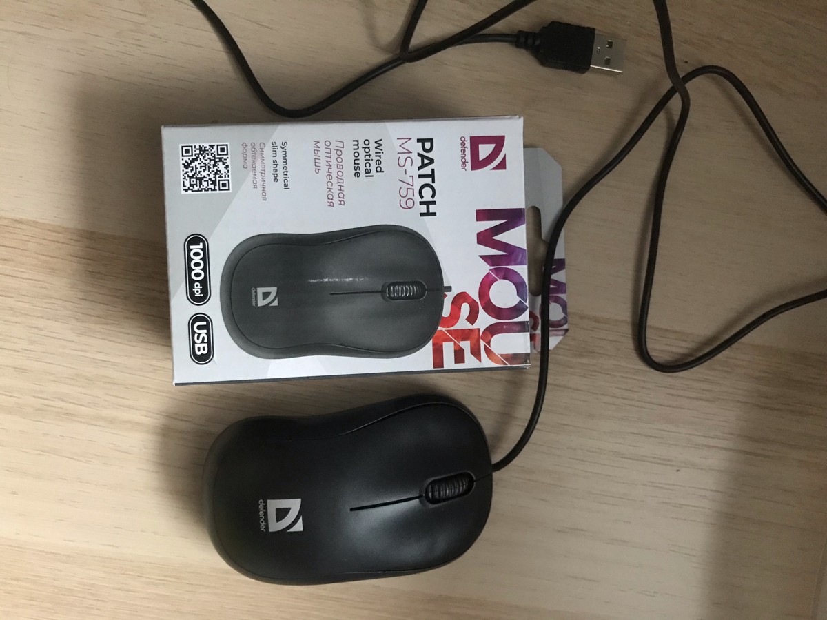 Мышь проводная Defender Patch, черный