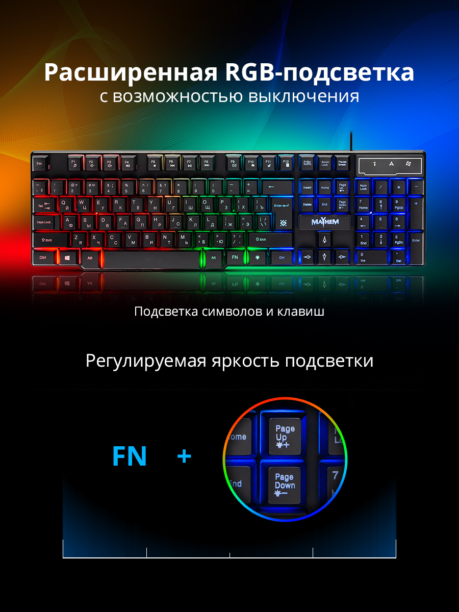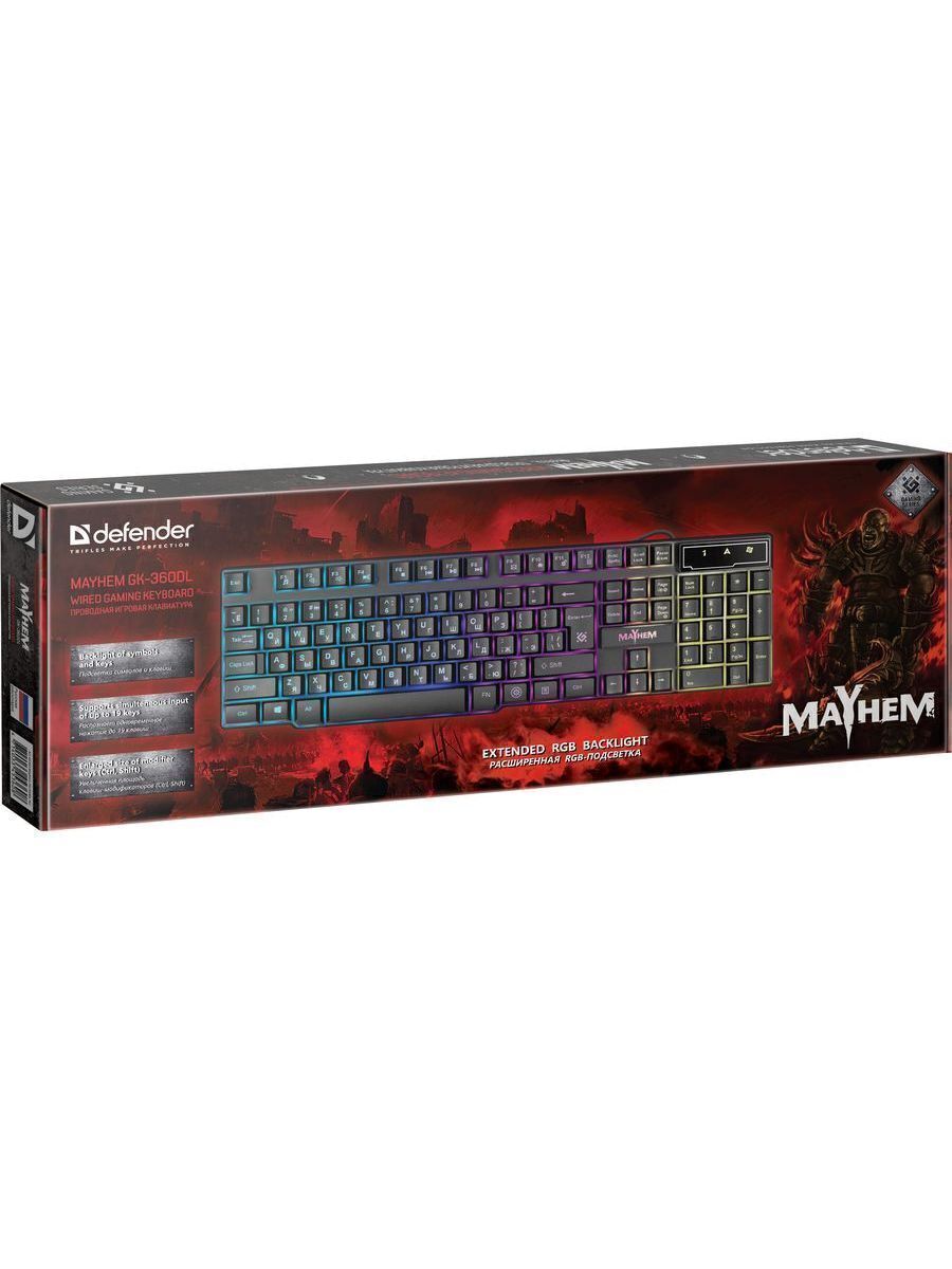 Игровая клавиатура проводная Defender Mayhem, черный