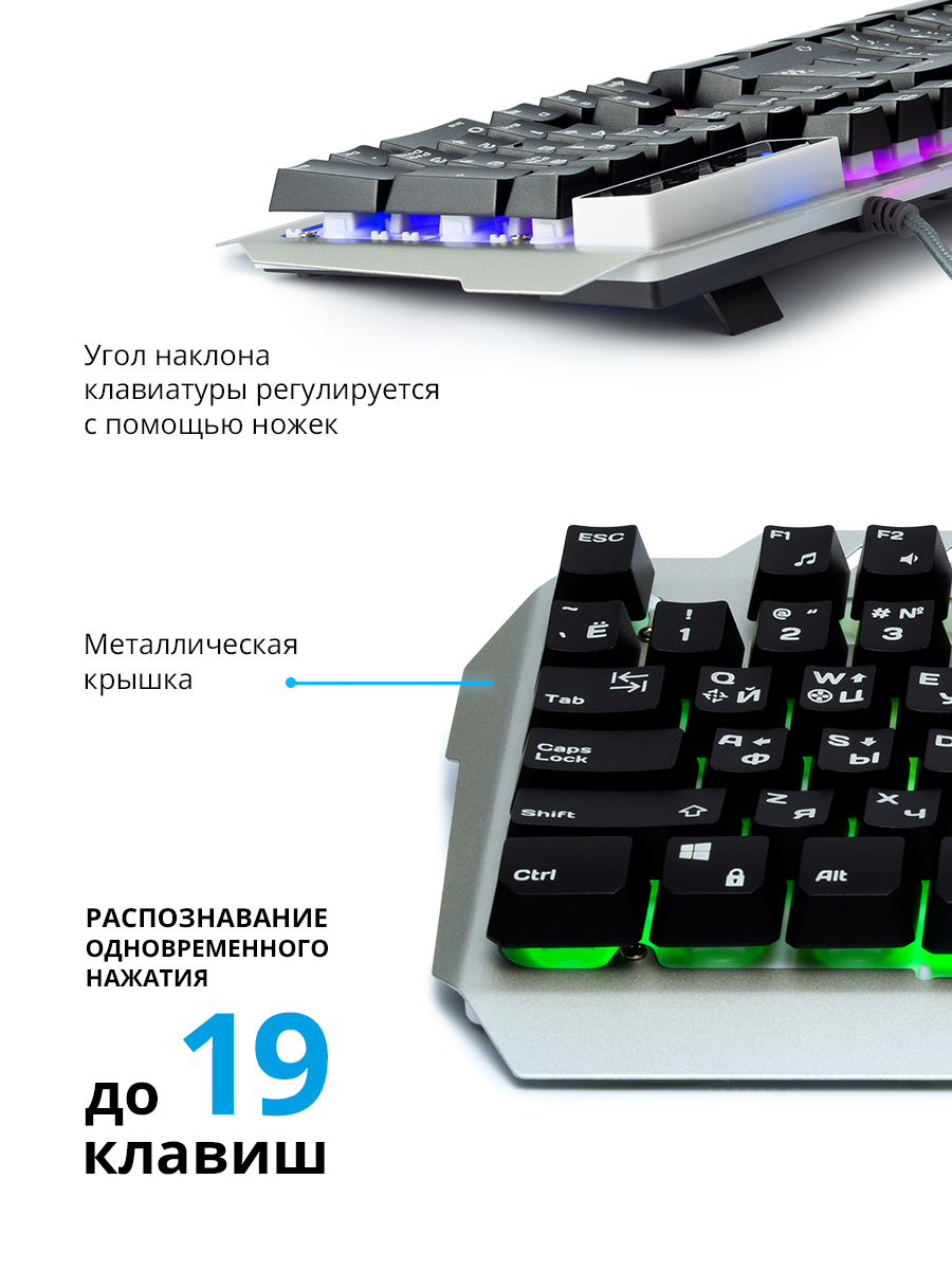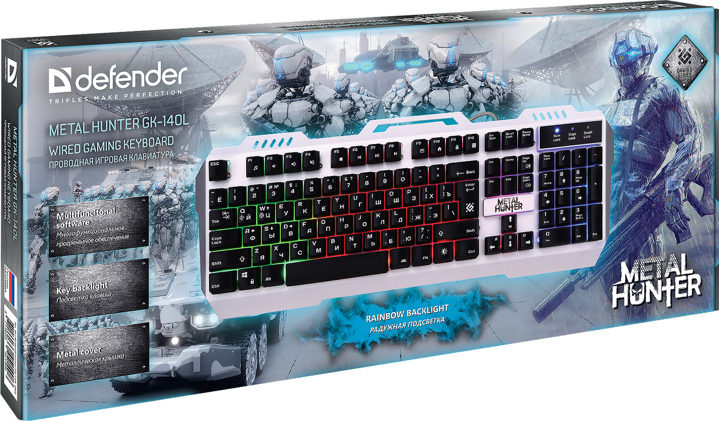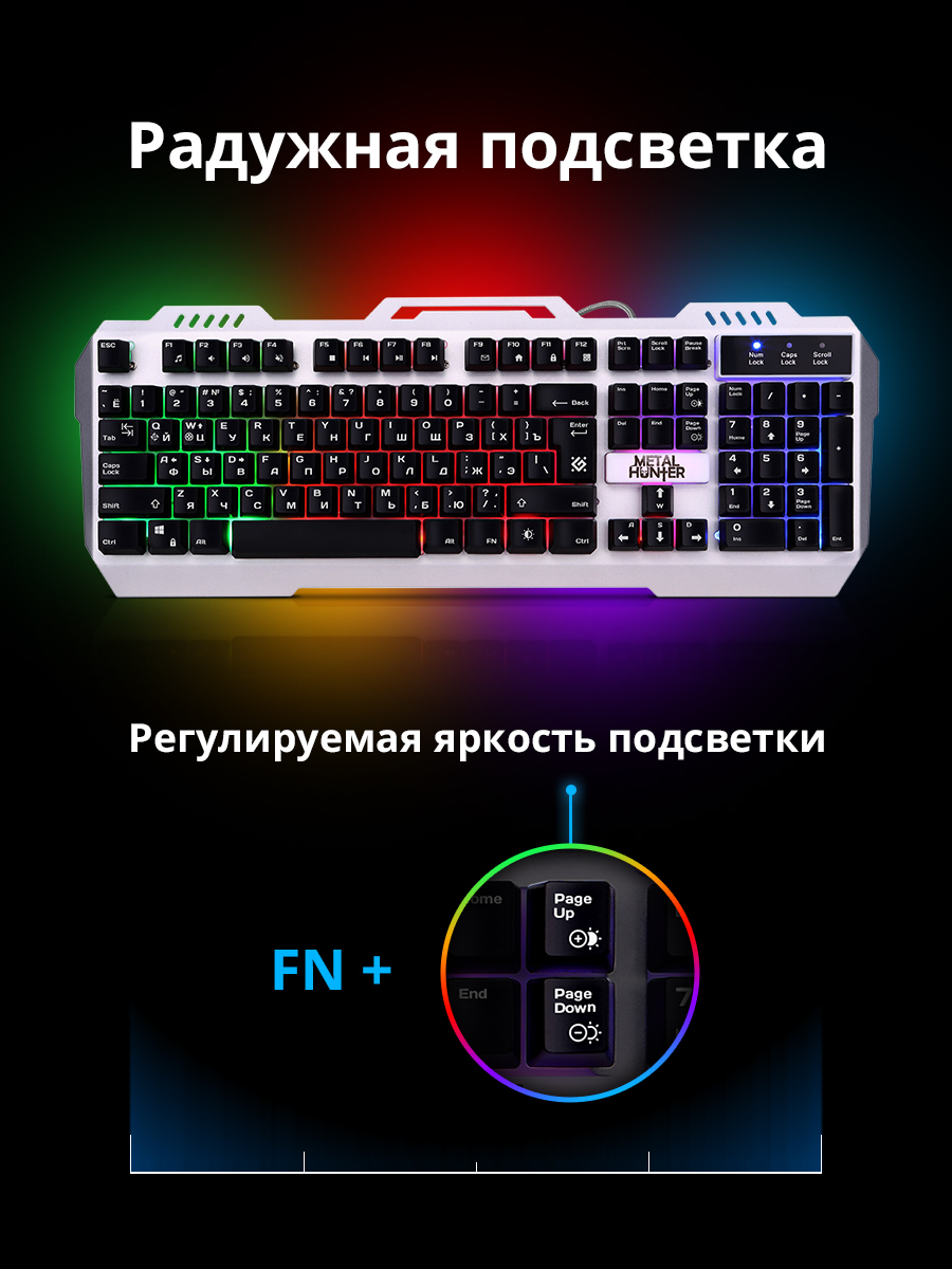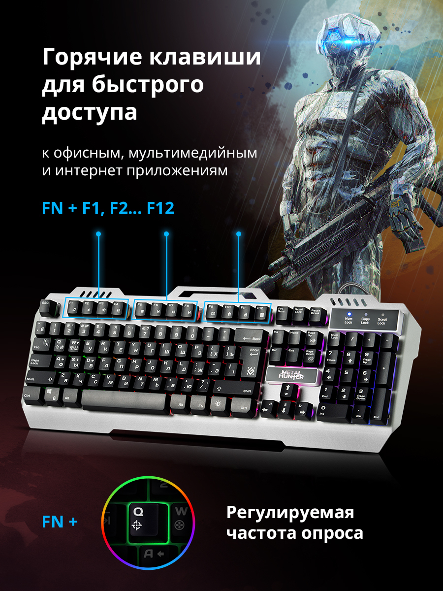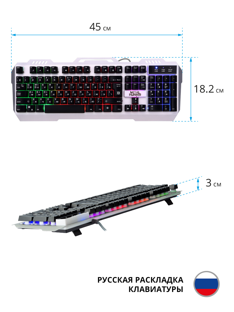 Игровая клавиатура проводная Defender Metal Hunter, серебристый