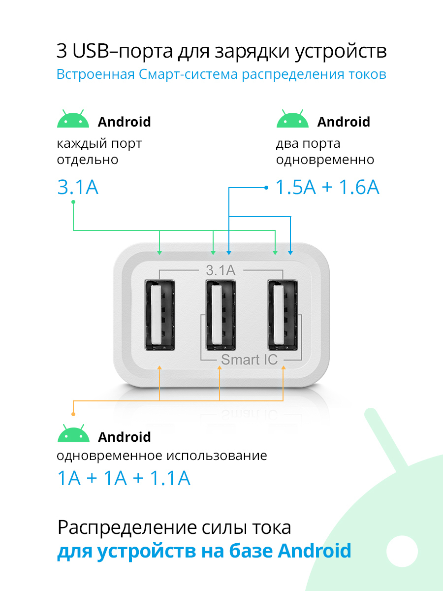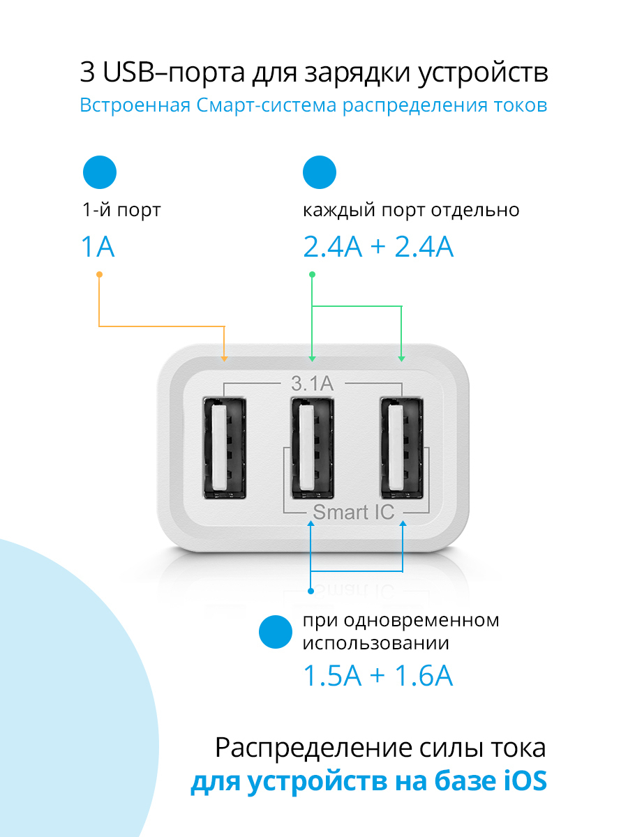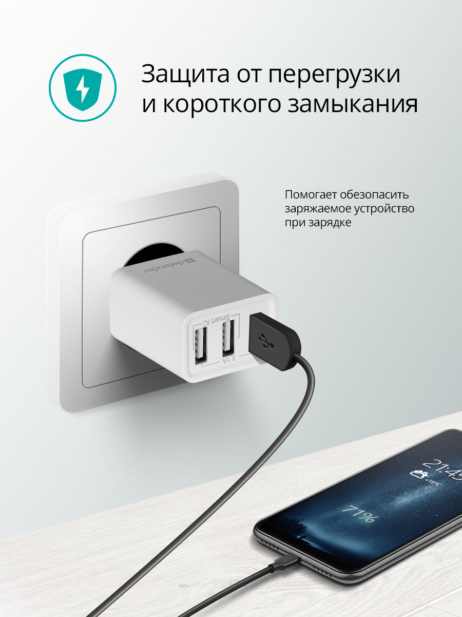 Сетевое зарядное устройство Defender UPA-3 зарядка для телефона на 3xUSB, 5V/3.1А, белый