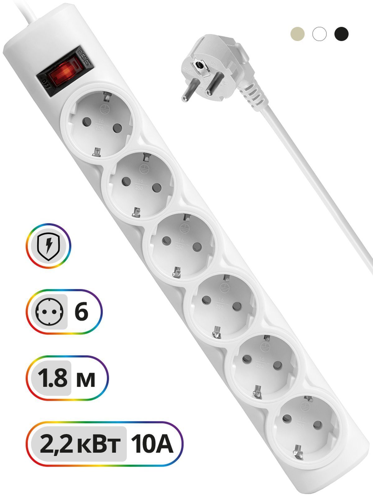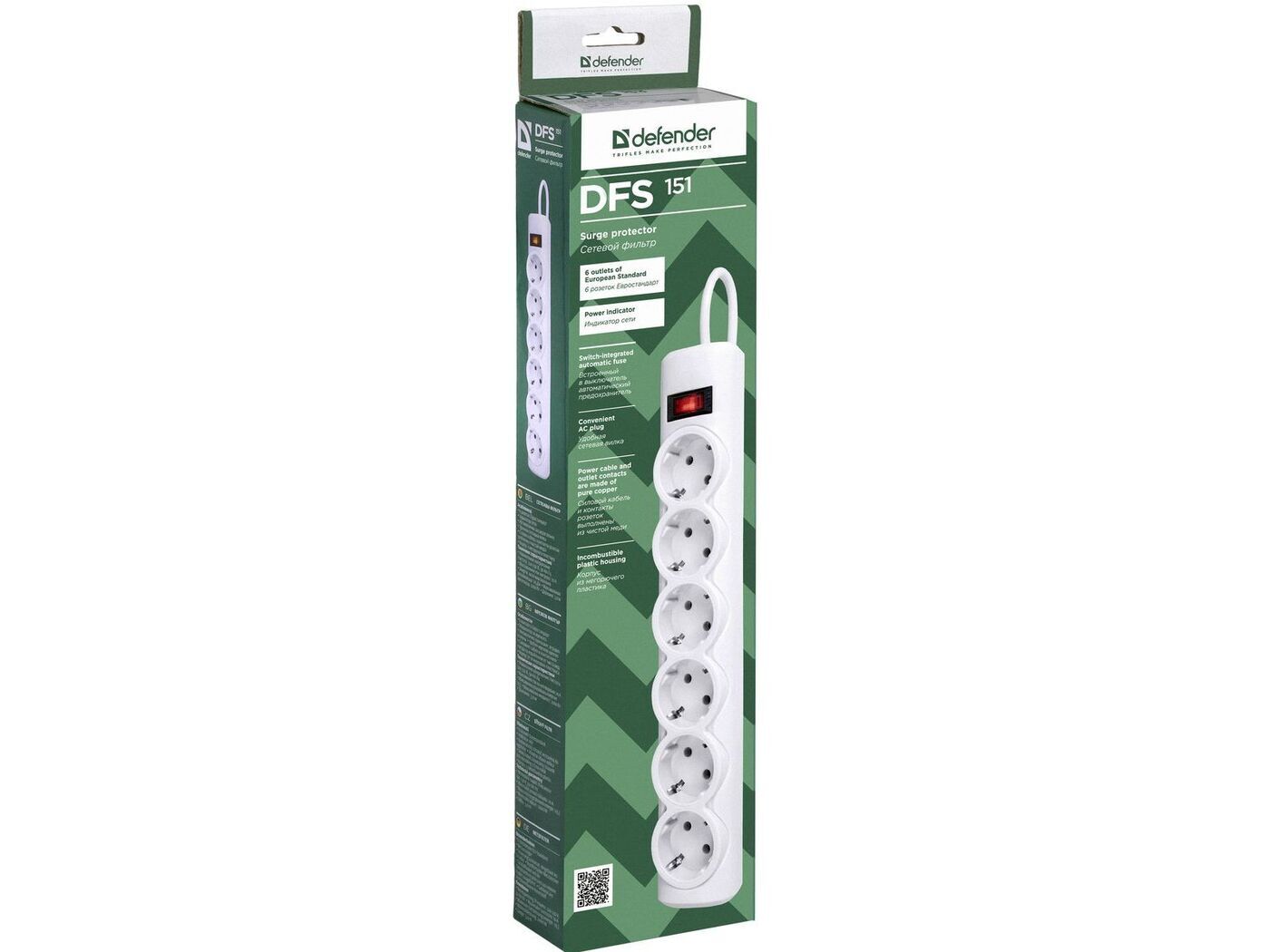 Сетевой фильтр-удлинитель Defender 5 розеток, 1.8 метра, выключатель, с заземлением, черный