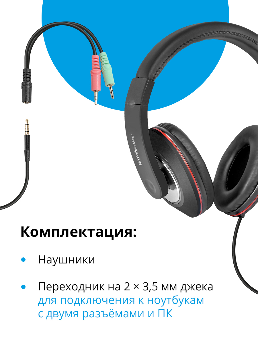 Наушники Defender Accord 171 черный, кабель 1,2 м, с микрофоном