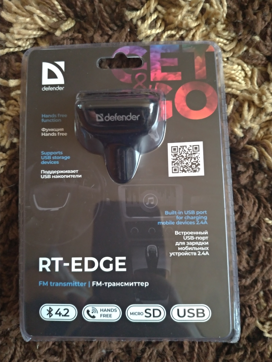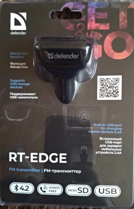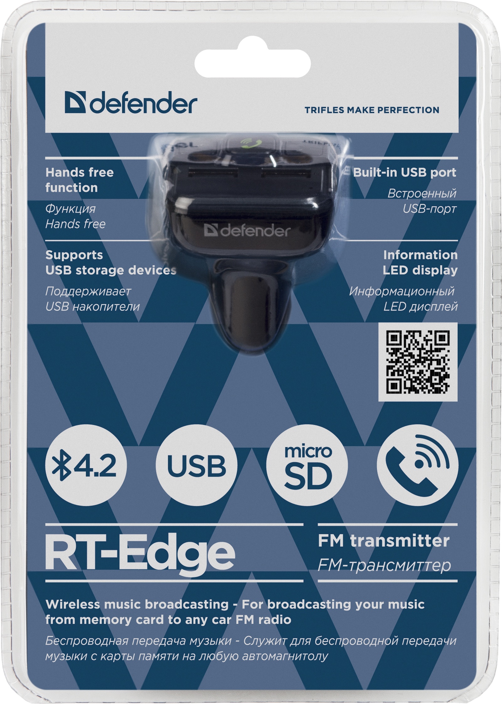 FM-трансмиттер Defender RT-Edge Bluetooth/HF, USB 2.4 A