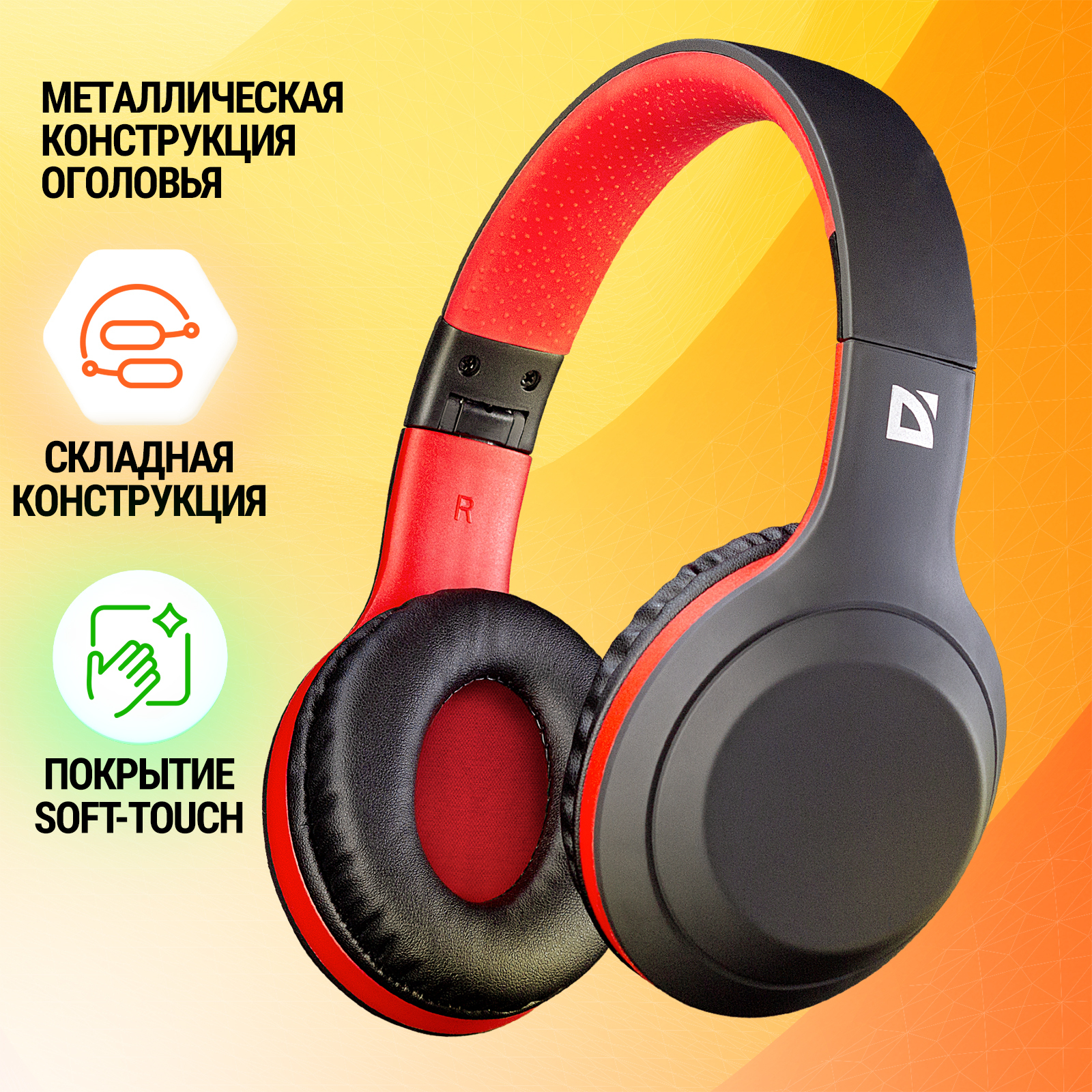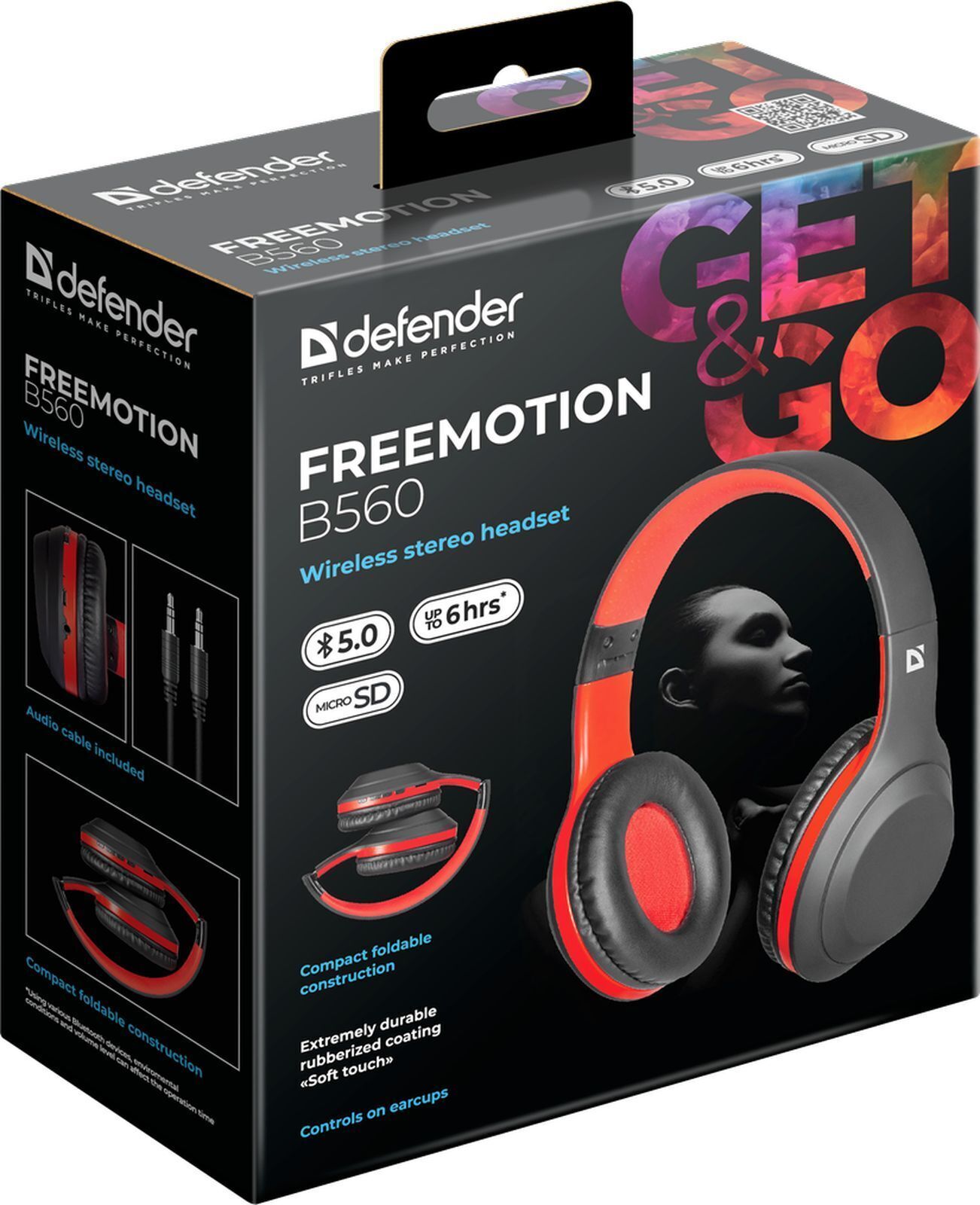 Беспроводный наушники Defender FreeMotion B560 черный+красный, Bluetooth