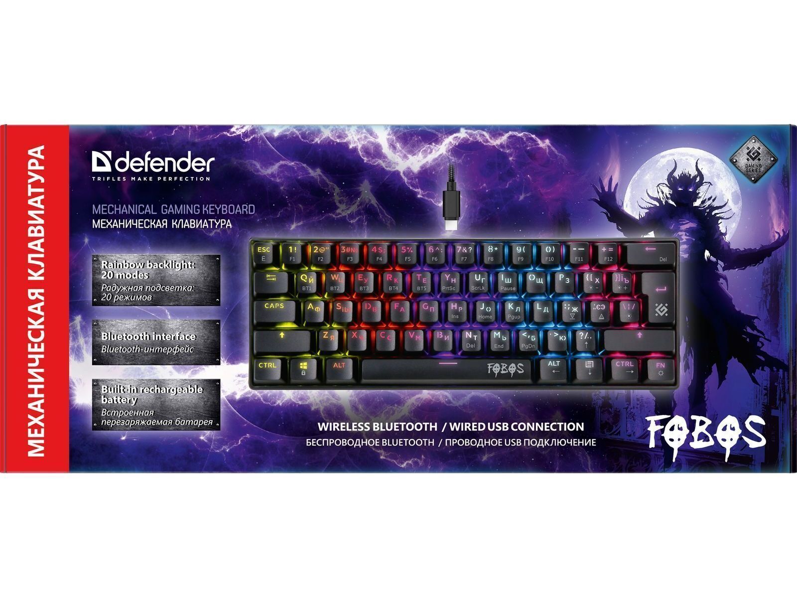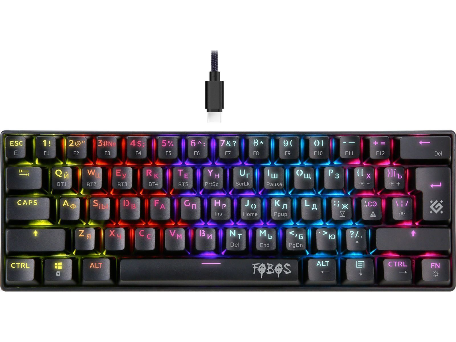 Механическая клавиатура Defender Fobos GK-011 RU, 61 кнопка, Bluetooth, Rainbow