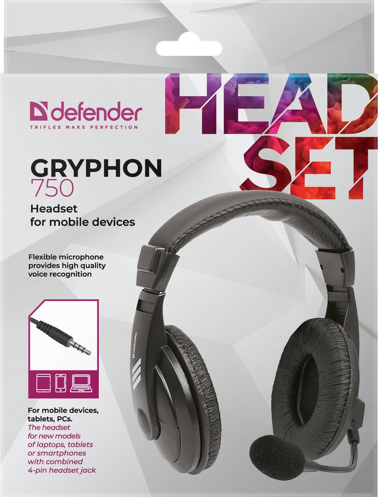 Игровые наушники с микрофоном Defender Shadow черный, софттач, провод 2м