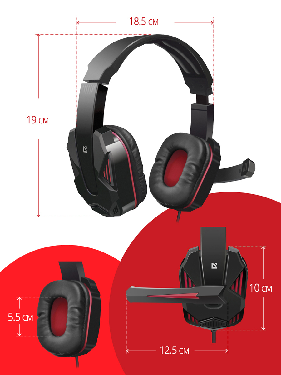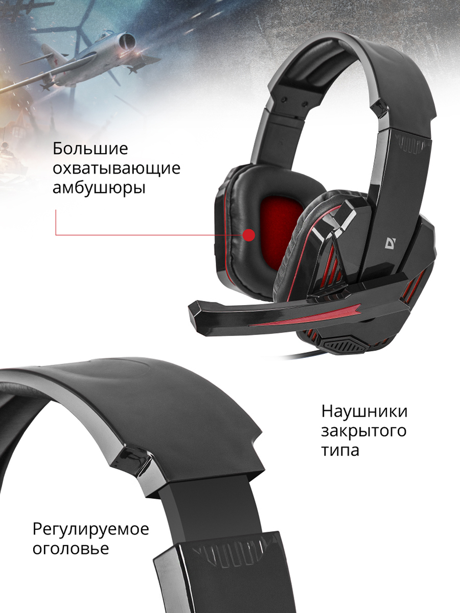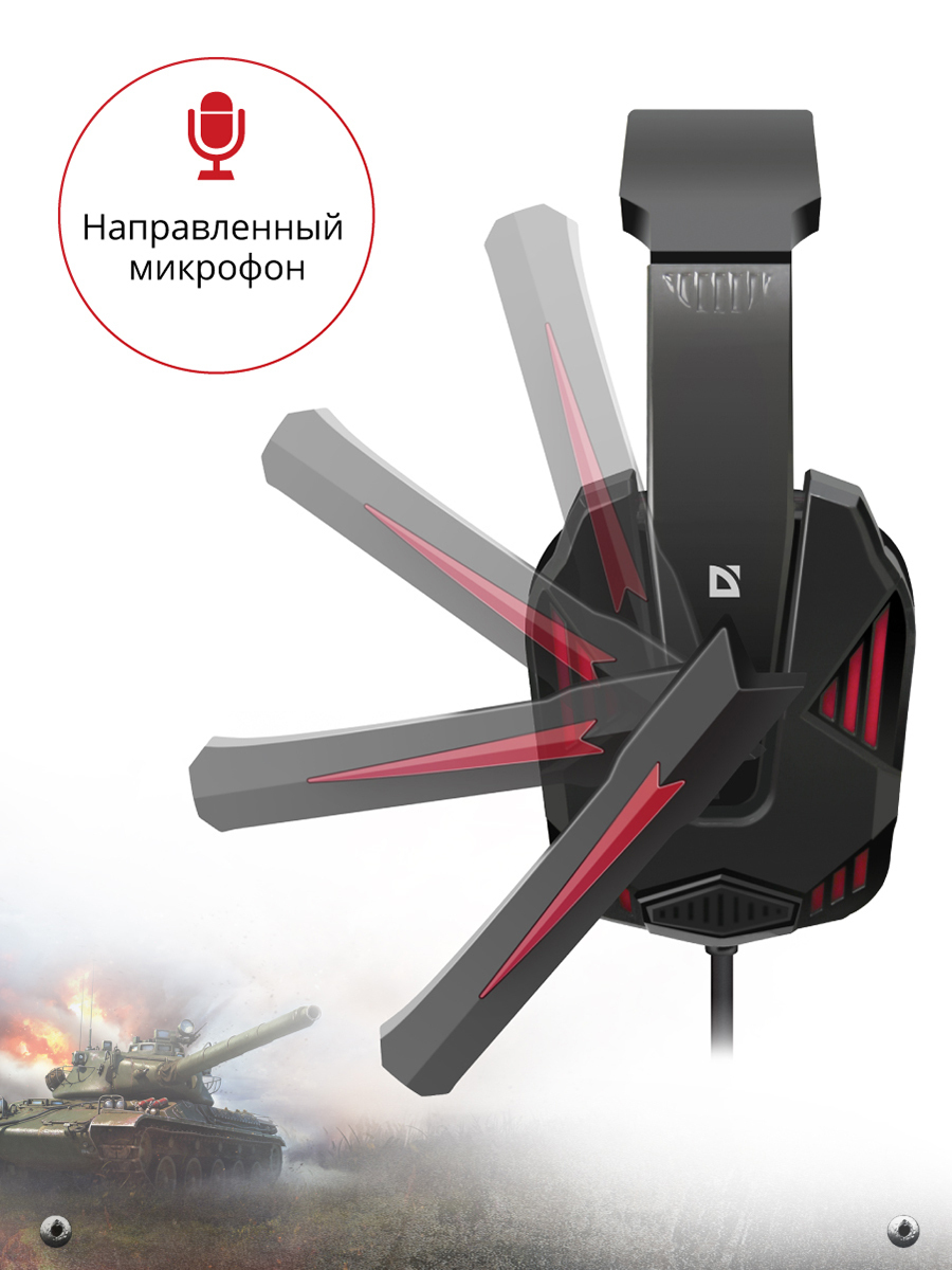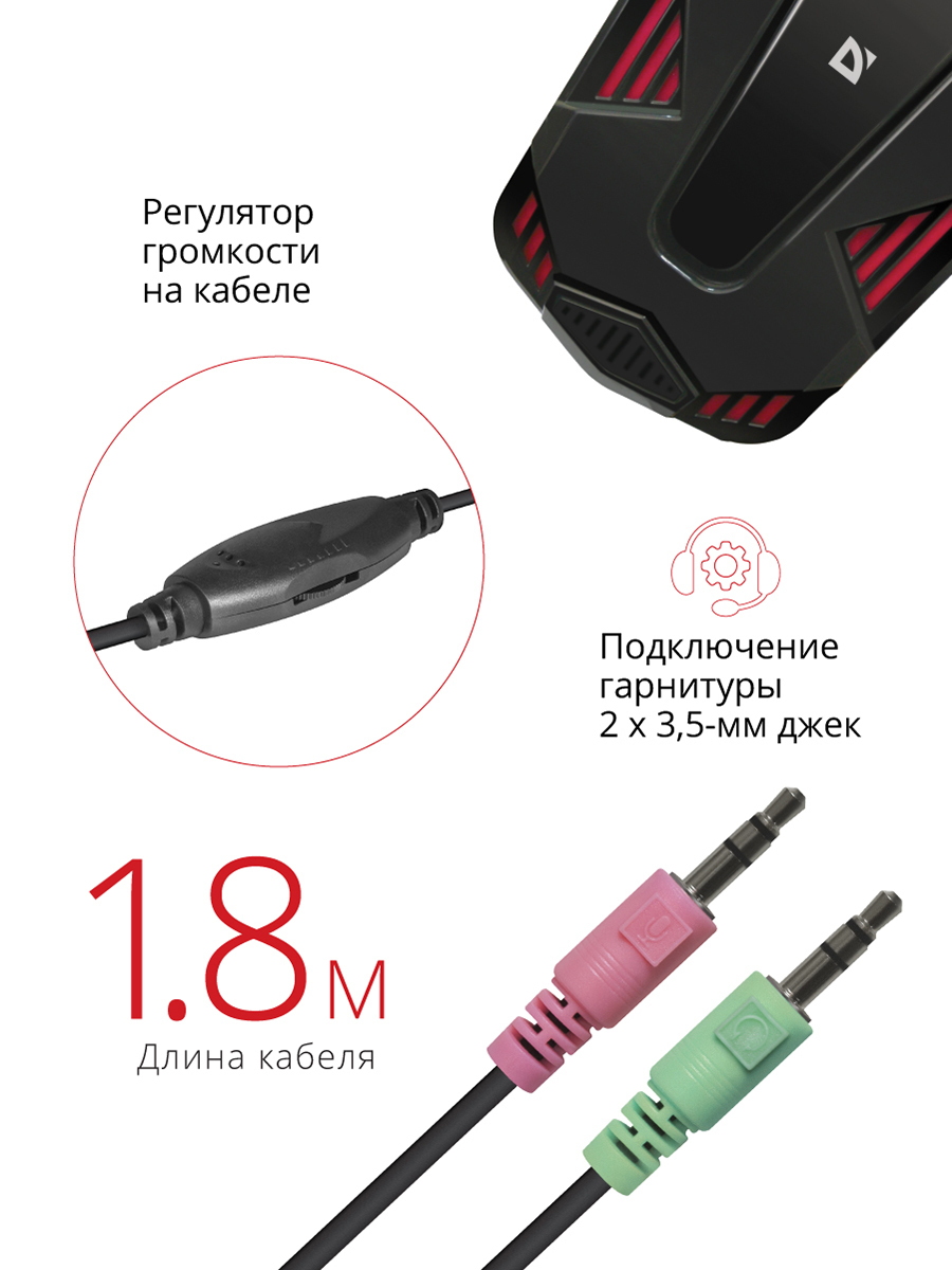 Игровая гарнитура Defender Warhead G-260 красный + черный, кабель 1,8 м