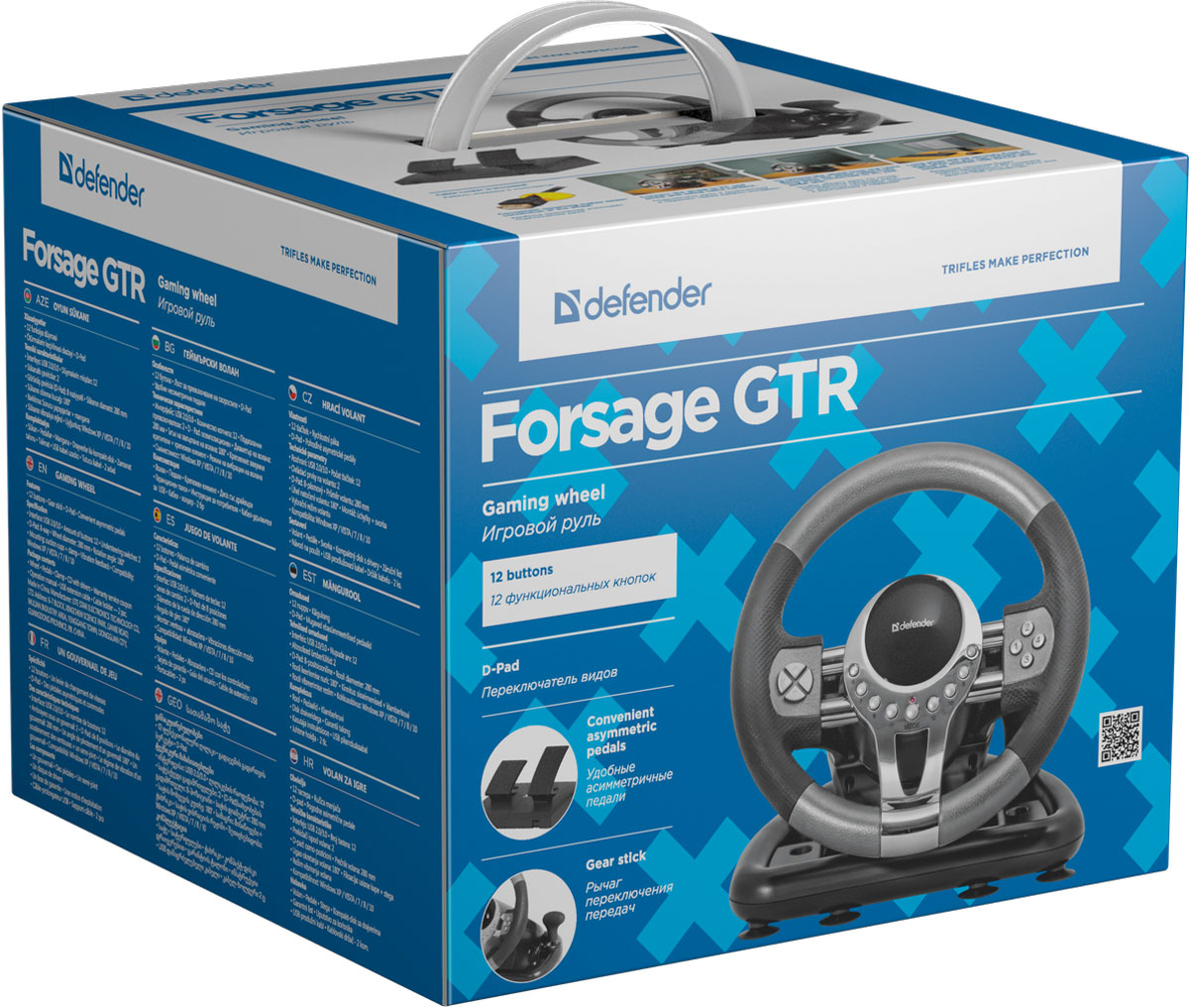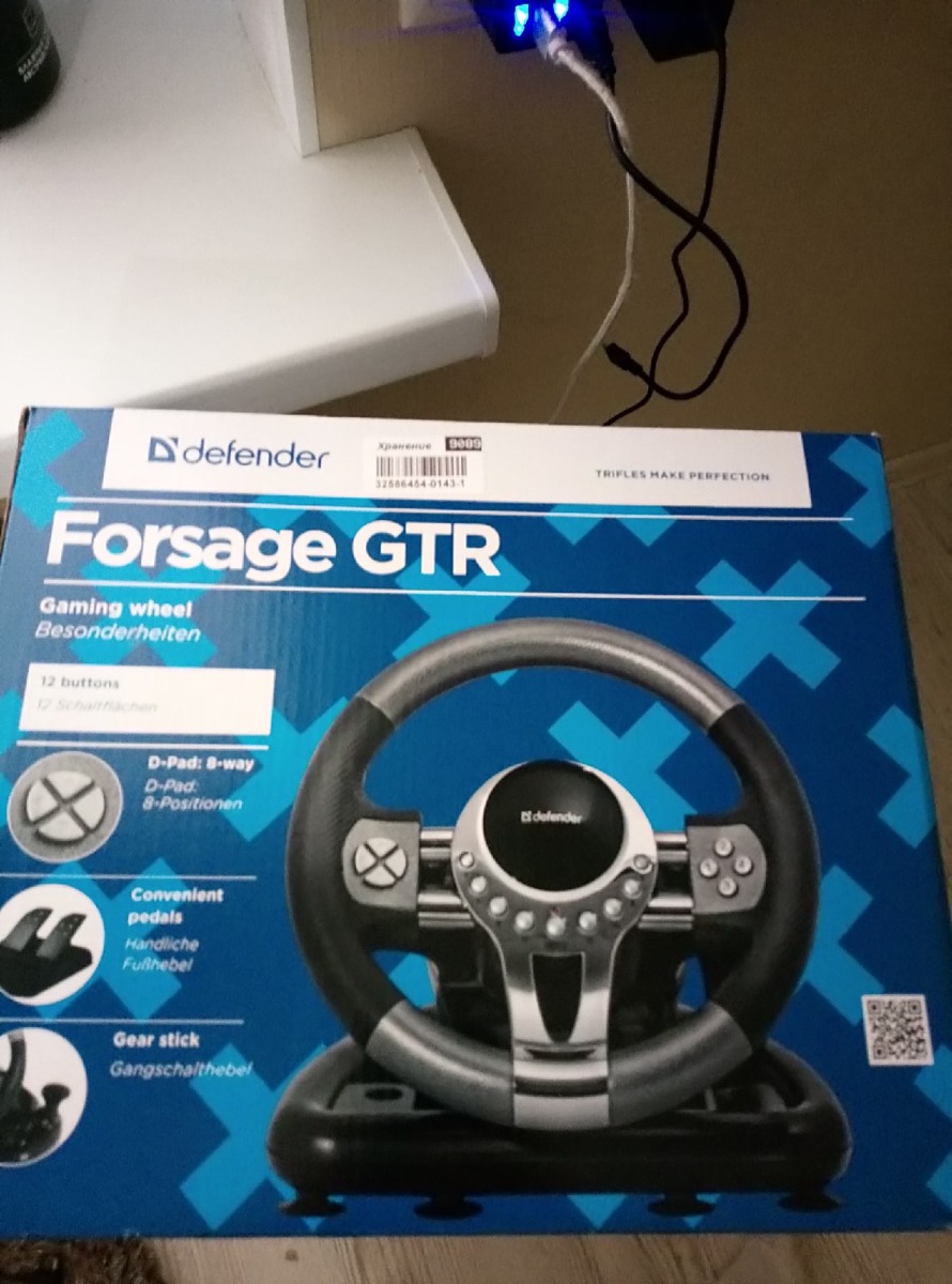 Игровой руль с педалями Defender Forsage GTR USB 12 кнопок, рычаг передач