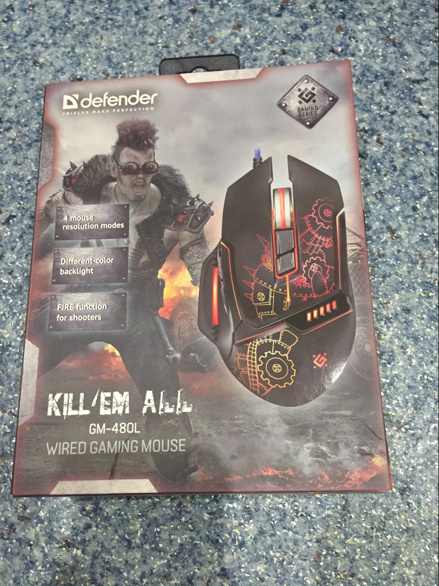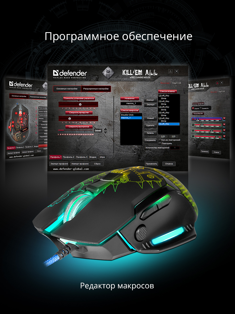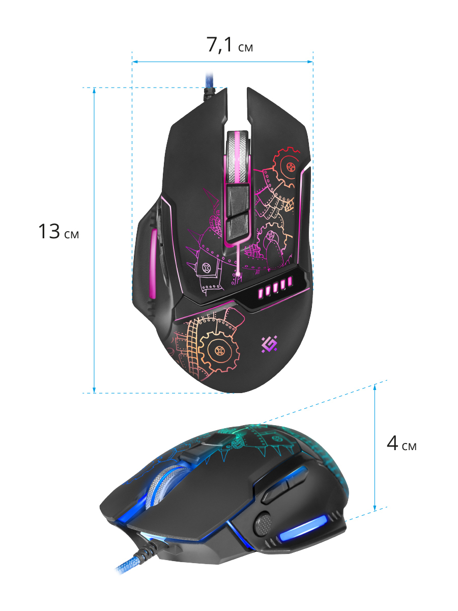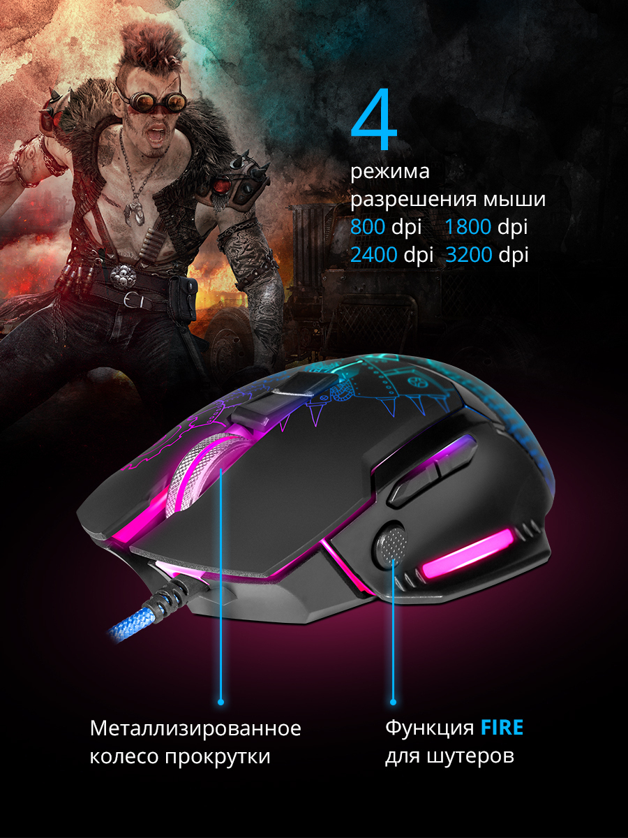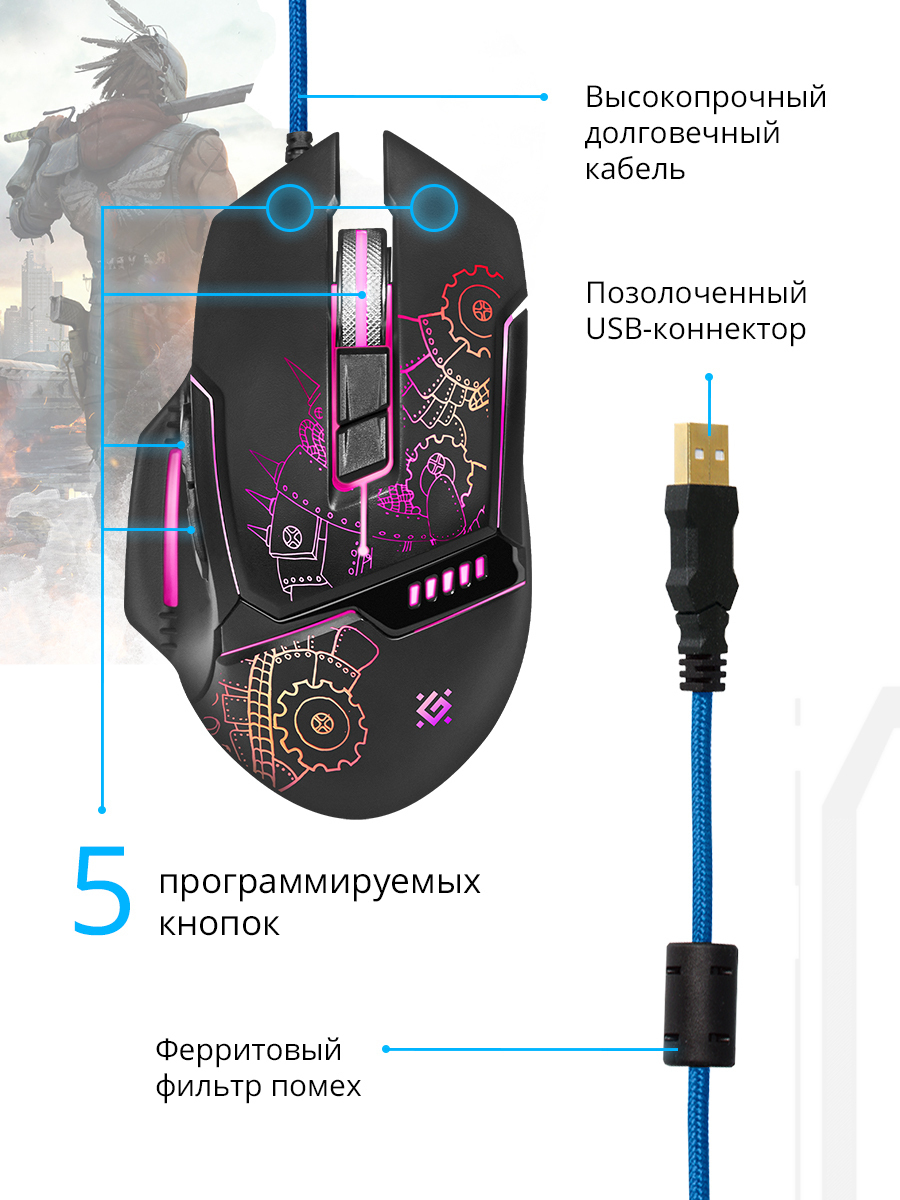 Игровая мышь проводная Defender Kill'em All, черный, голубой