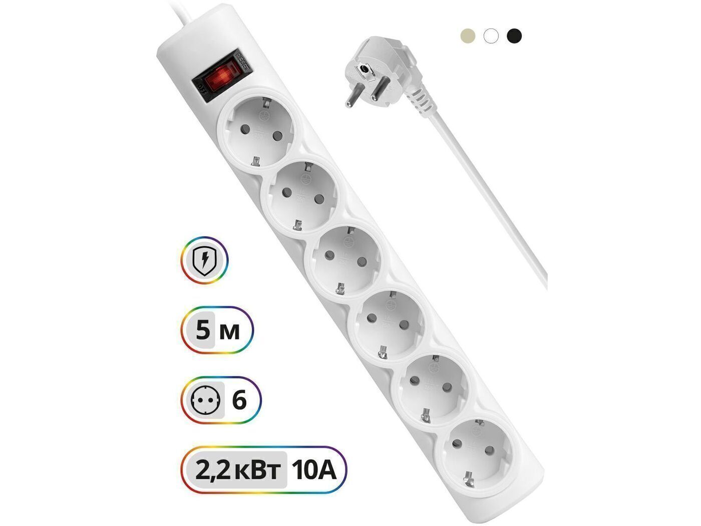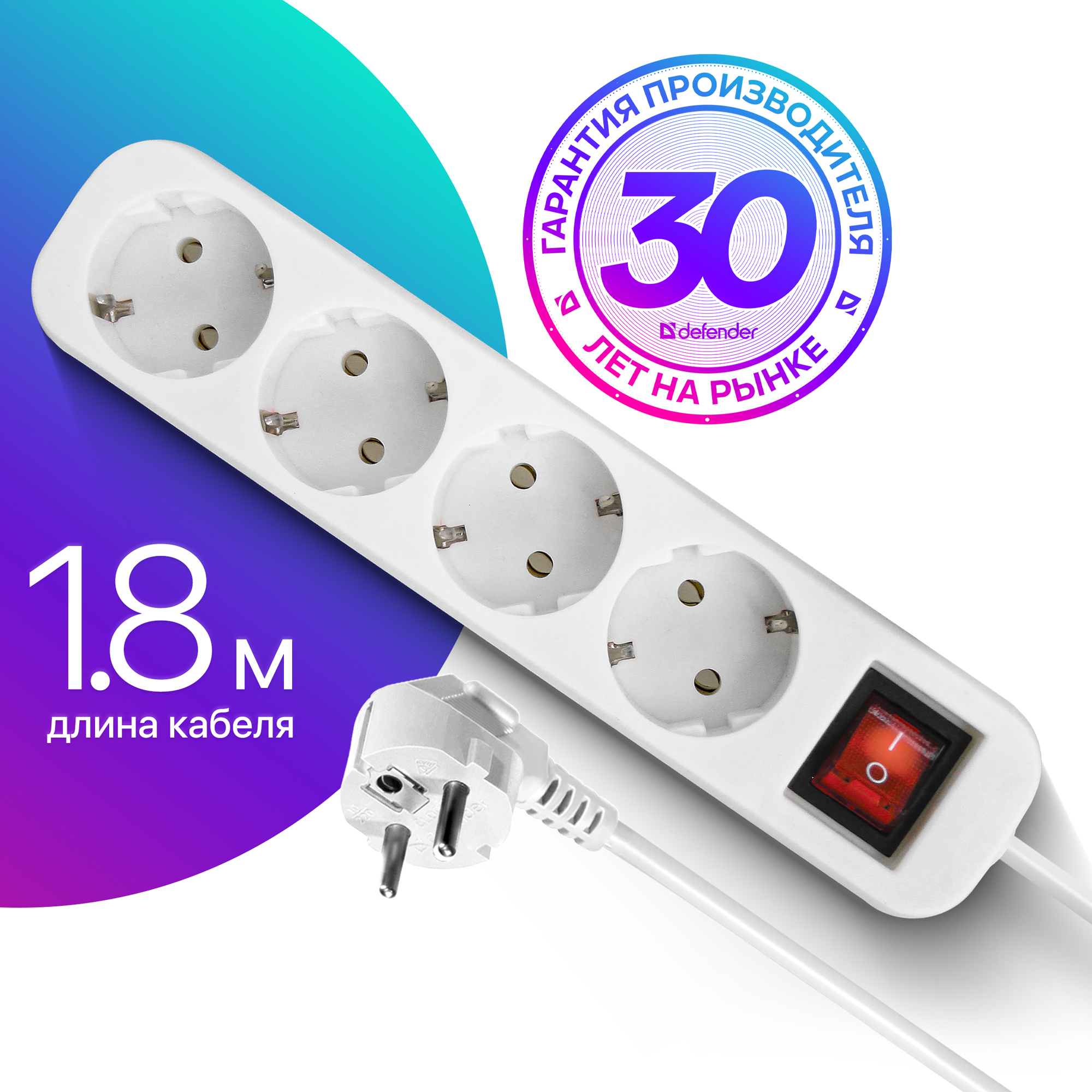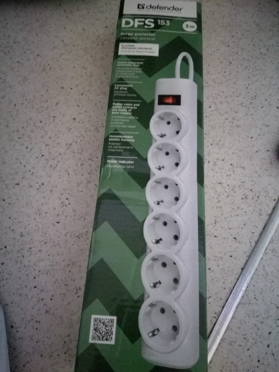 Сетевой фильтр-удлинитель Defender DFS, 6 розеток, 5 метров, белый