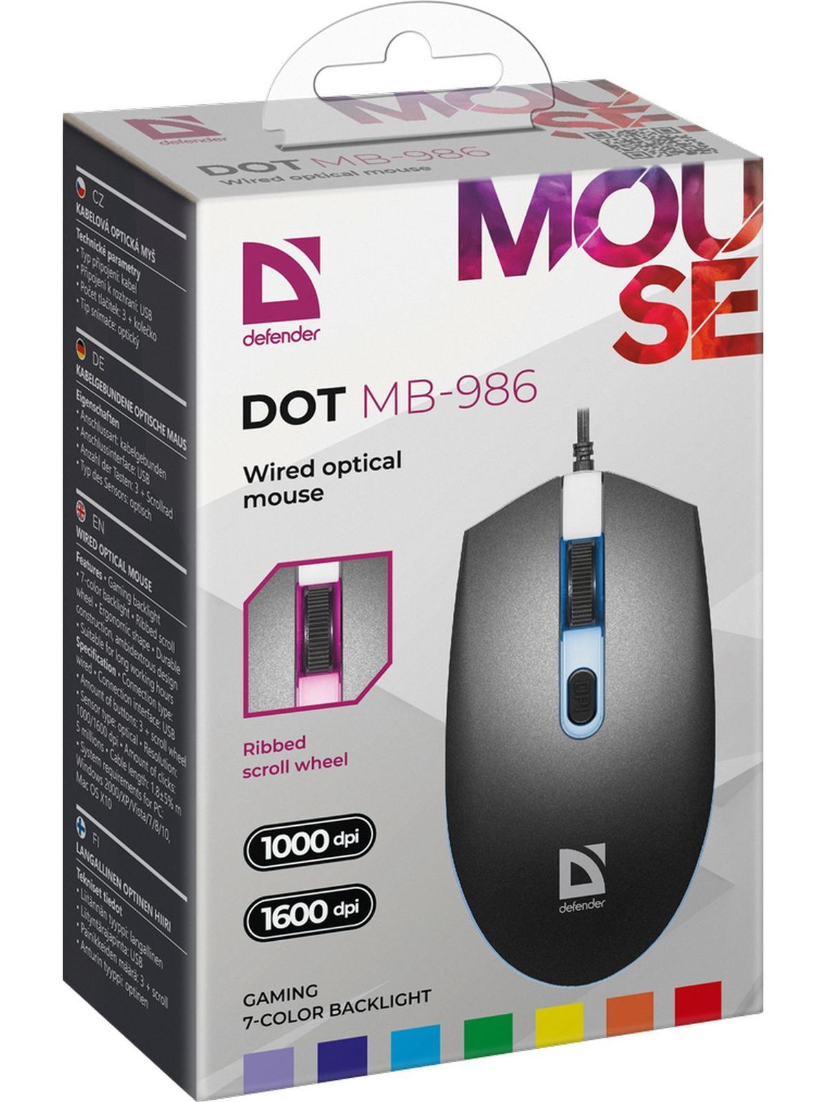 Проводная оптическая мышь Defender Dot MB-986 7 цветов, 4D, 1000/1600dpi