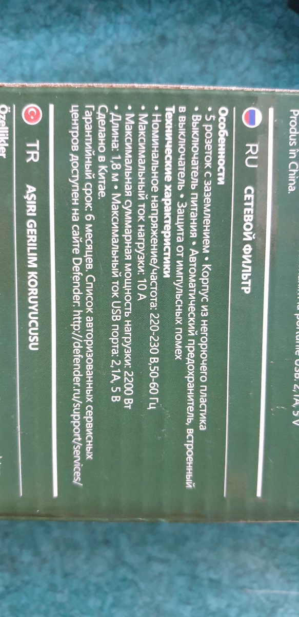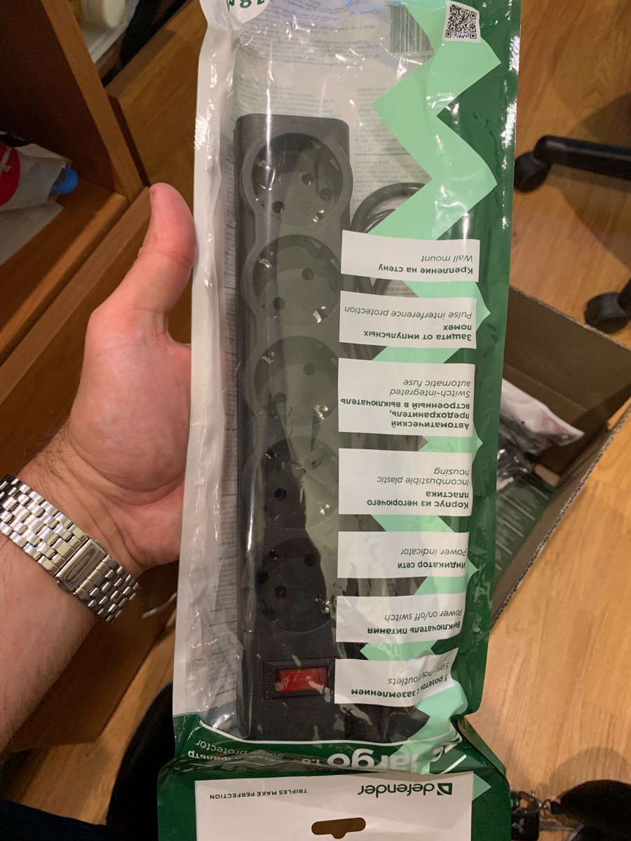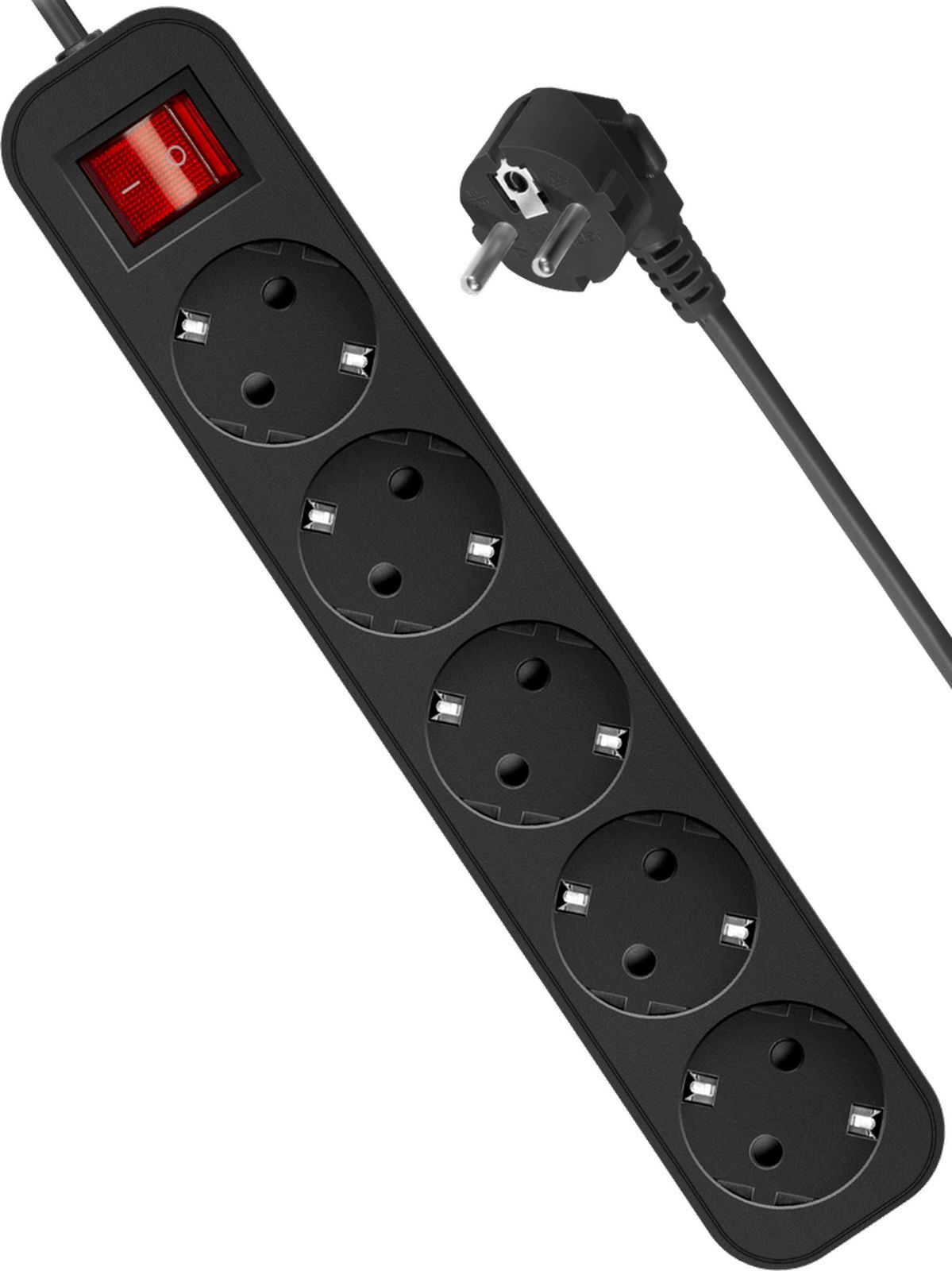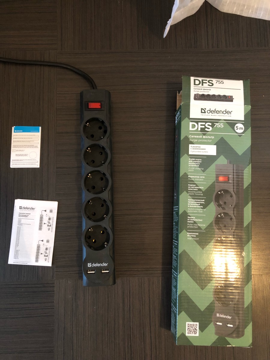 Сетевой фильтр-удлинитель Defender 5 розеток, 1.8 метра , с выключателем, с заземлением, черный