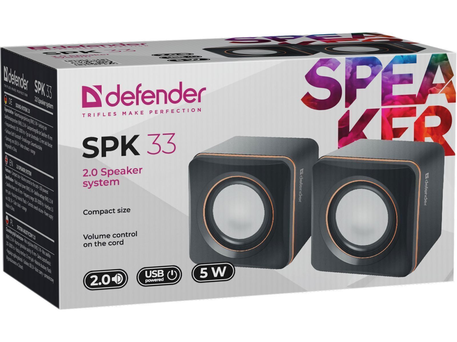 Колонки компьютерные Defender SPK-33 , 5 Вт , питание от USB. Уцененный товар