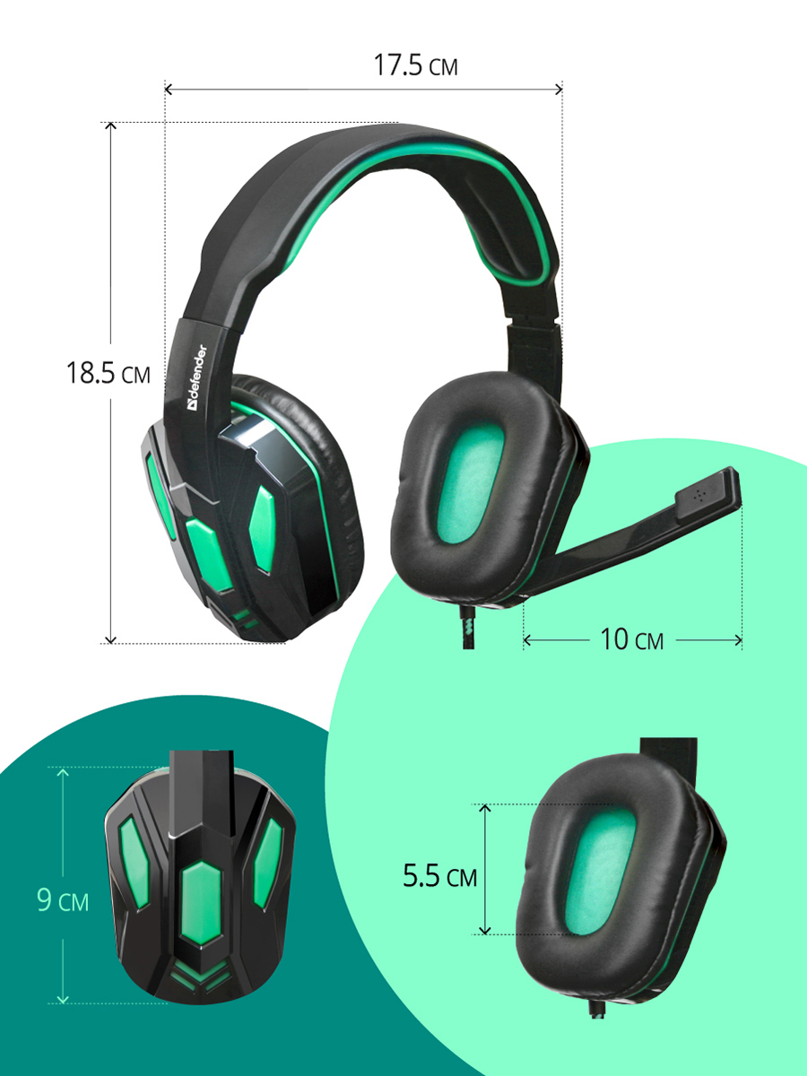 Игровые наушники Defender,черный, зеленый