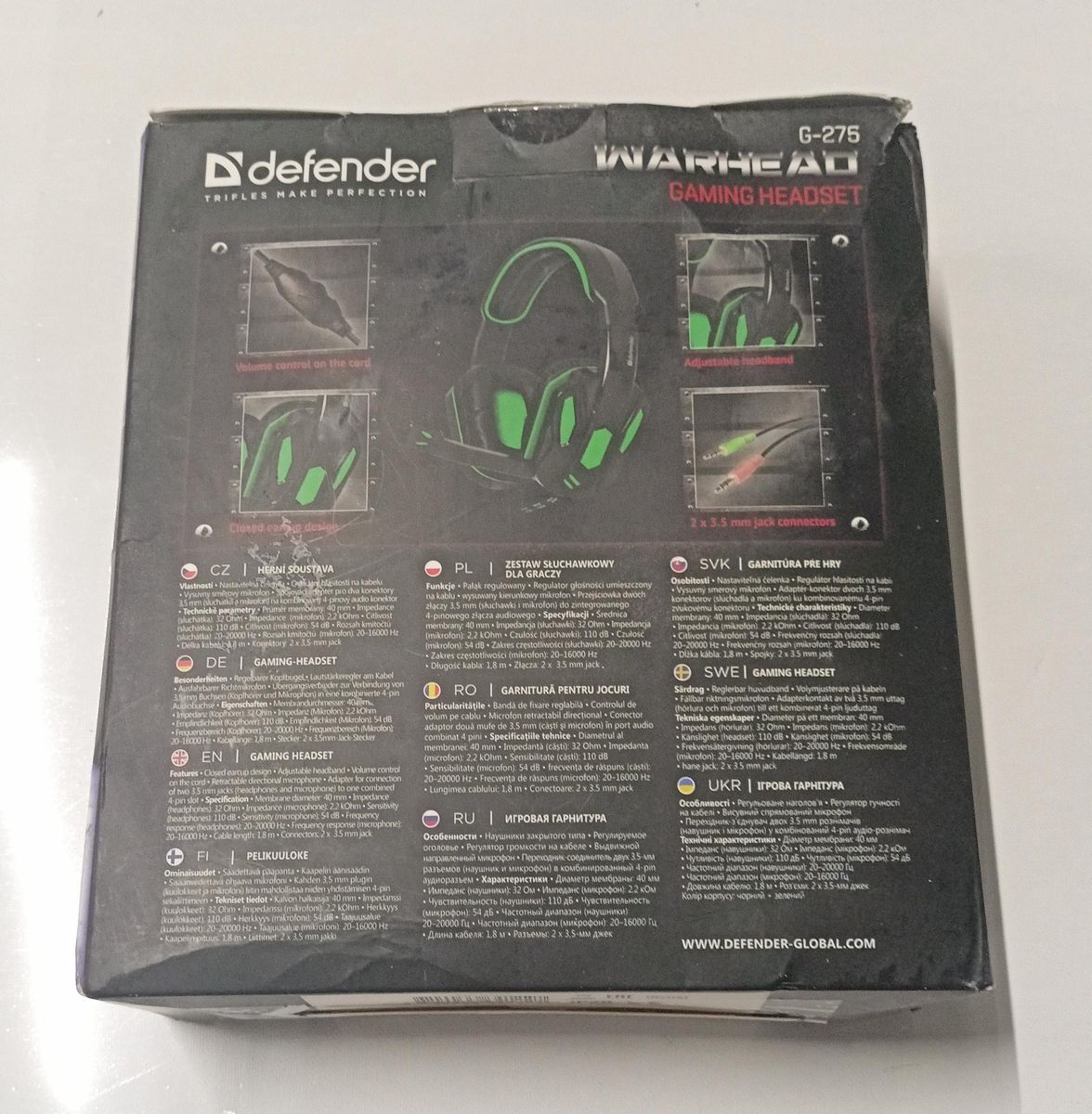 Компьютерная гарнитура, Игровые наушники Defender Warhead G-275, кабель 1.8 м, черный, зеленый