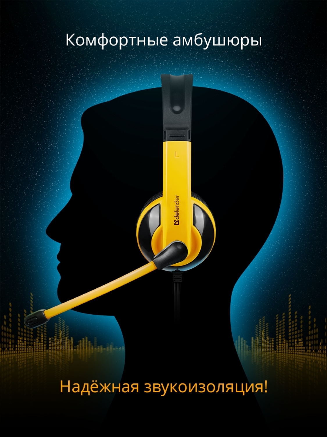 Наушники игровые с микрофоном Defender Tune 130, кабель 2.1 м. Уцененный товар