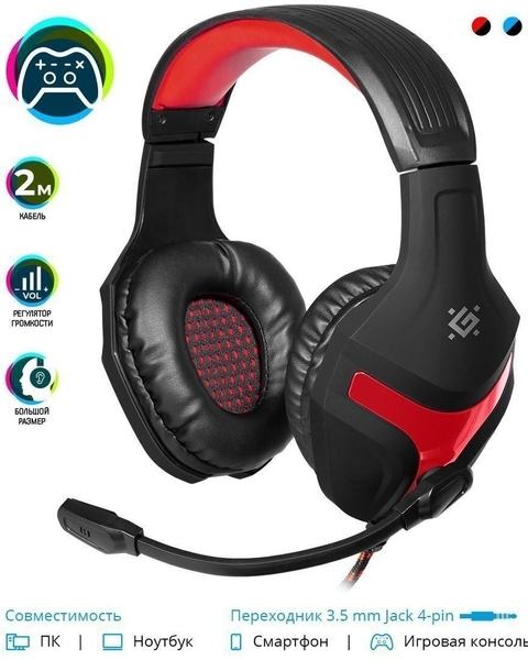 Игровые наушники Defender Scrapper 500 ,красный, черный