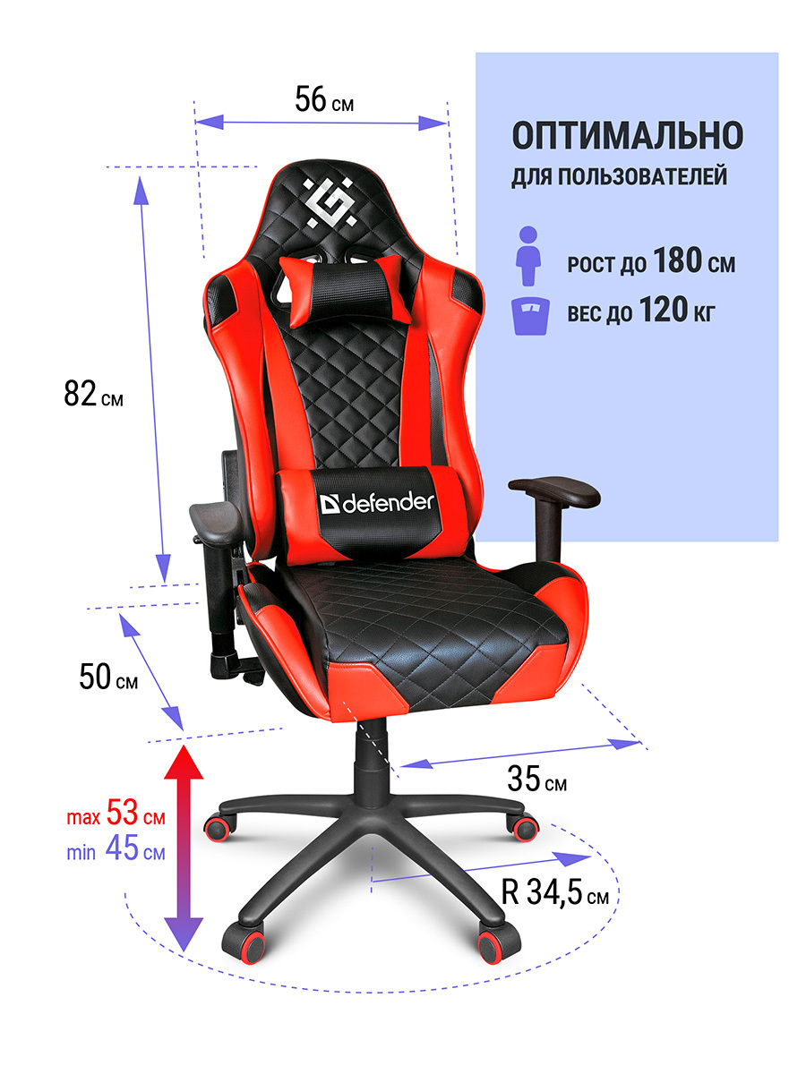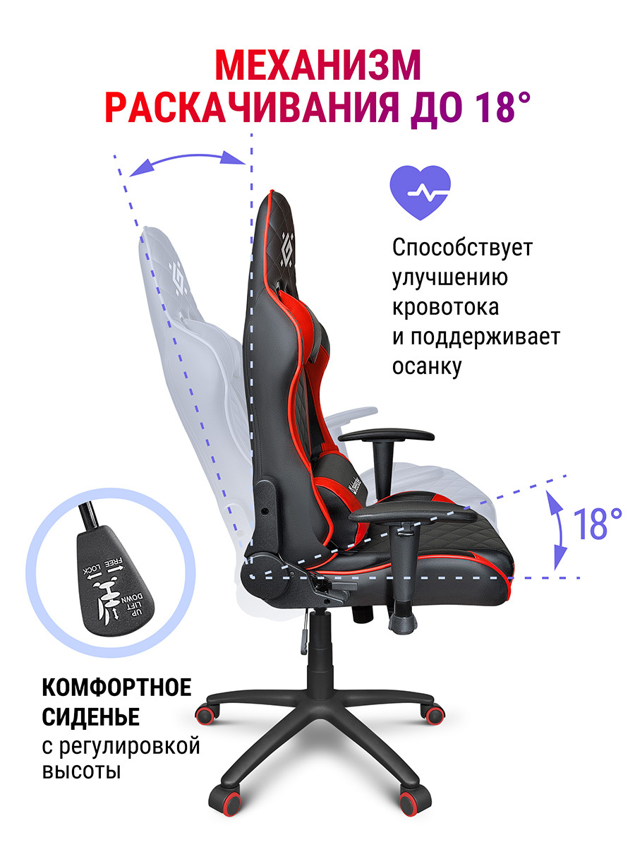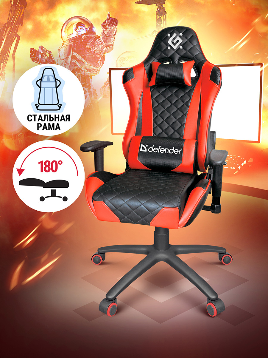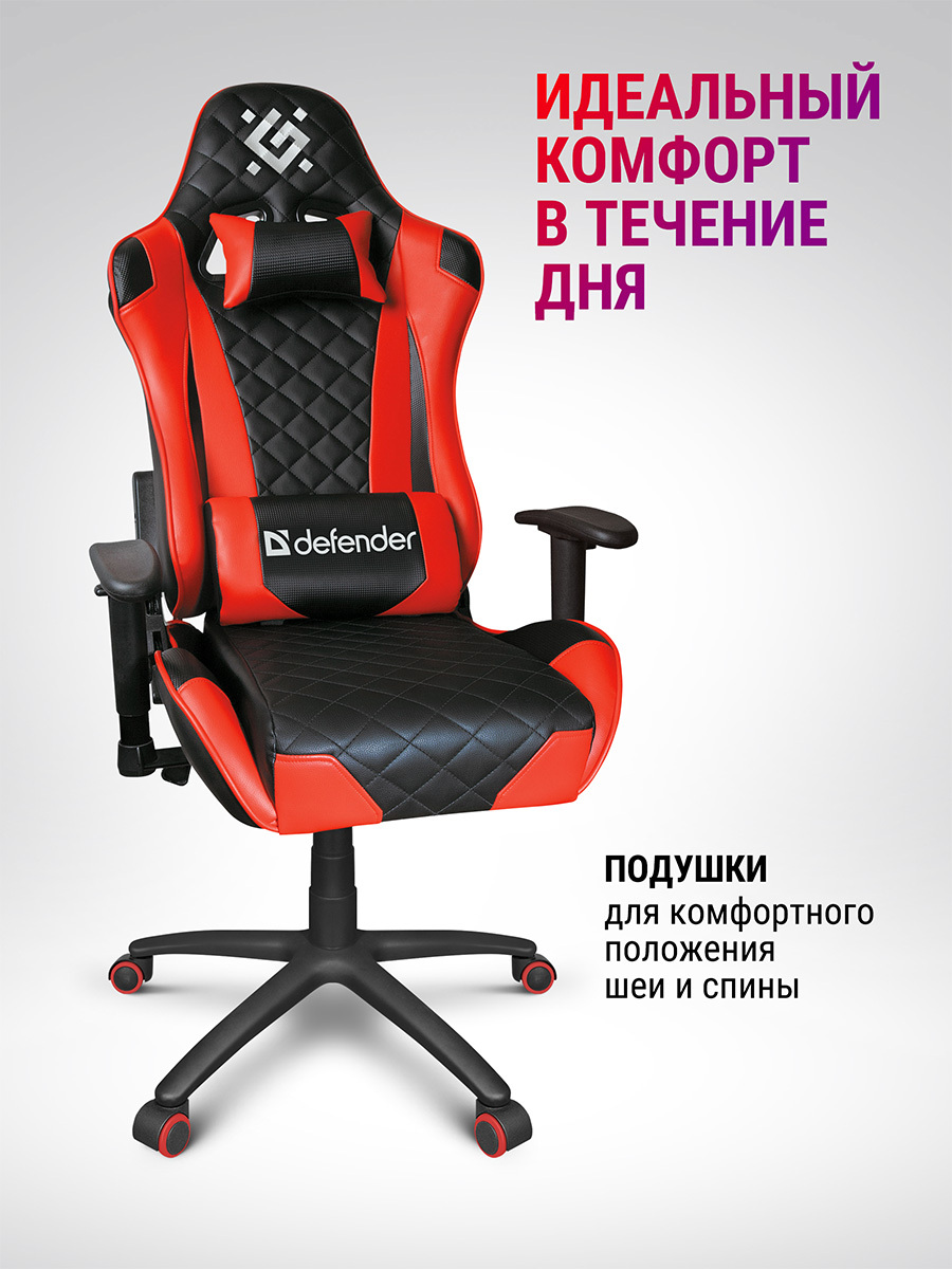 Игровое компьютерное кресло Defender CM-362, Экокожа, черный, красный