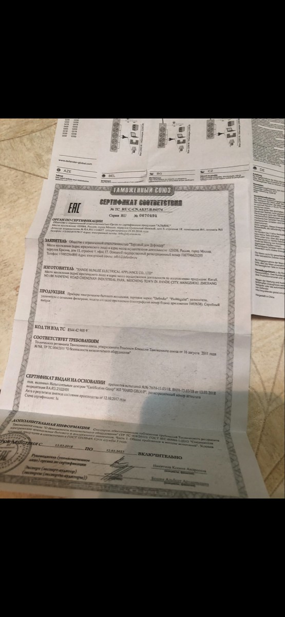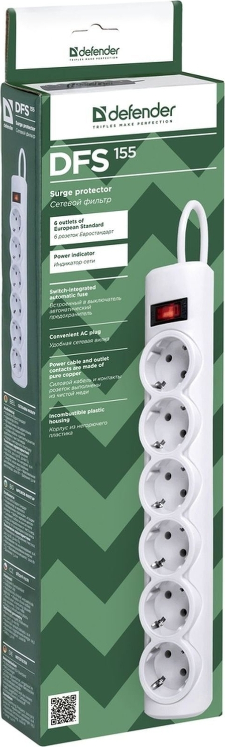Сетевой фильтр Defender DFS 155, 6 розеток, 10 А, 5 м, белый