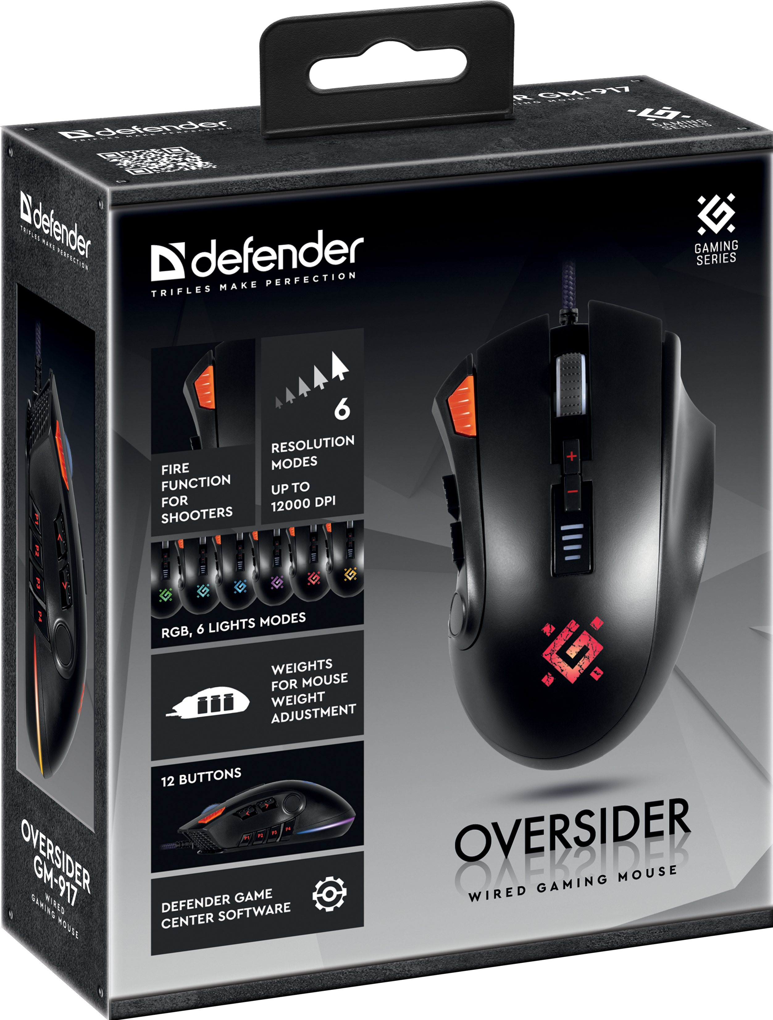 Игровая мышь Defender Oversider GM-917 RGB, 12 кнопок, 12000dpi. Уцененный товар