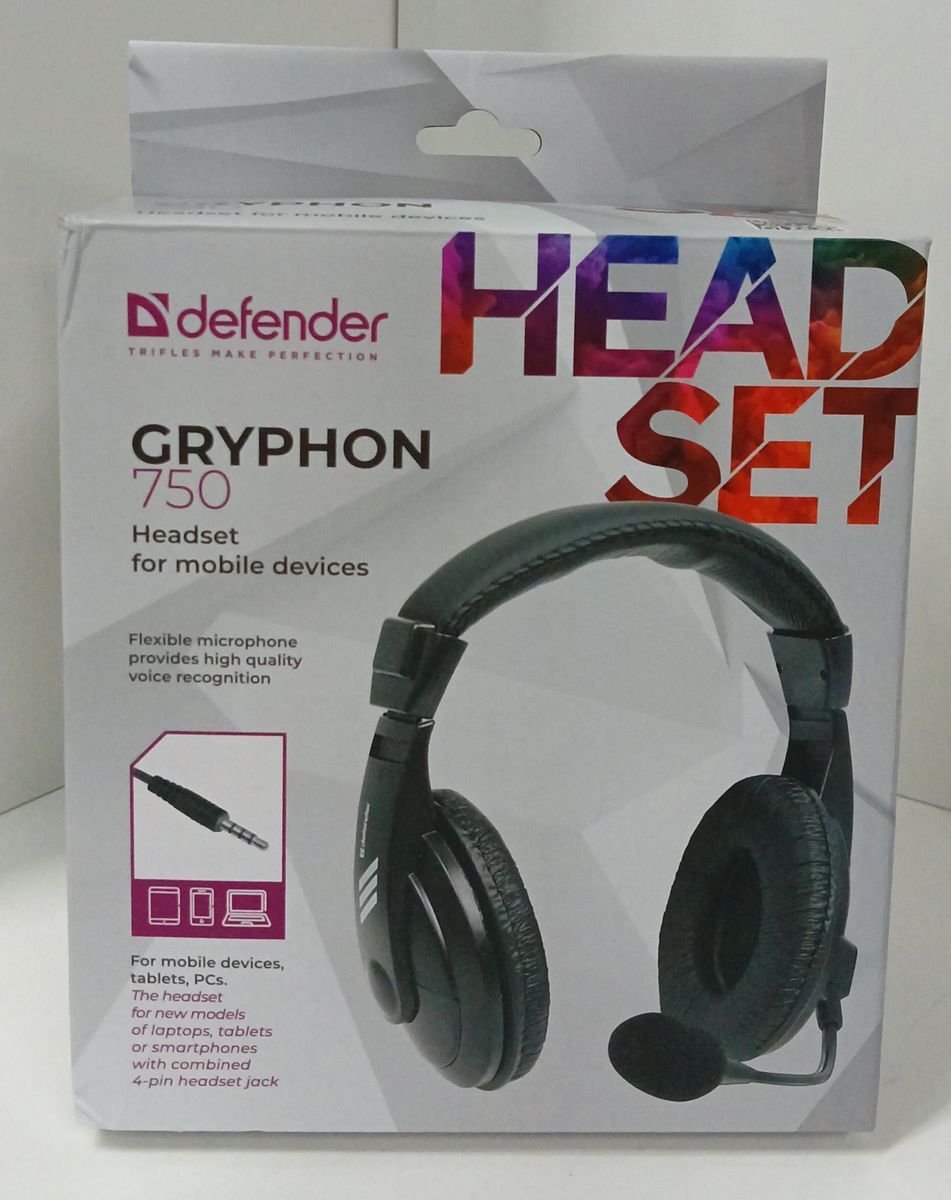 Игровые наушники с микрофоном Defender Gryphon 750 черный, 4-pin, кабель 2 м. Уцененный товар
