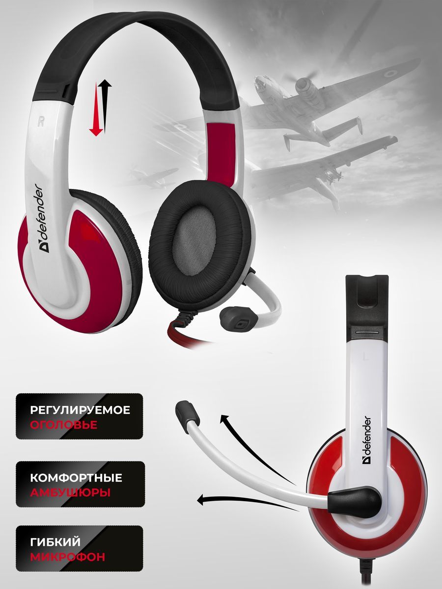 Компьютерная гарнитура, Игровые наушники Defender Warhead G-120, кабель 2 м, белый, красный