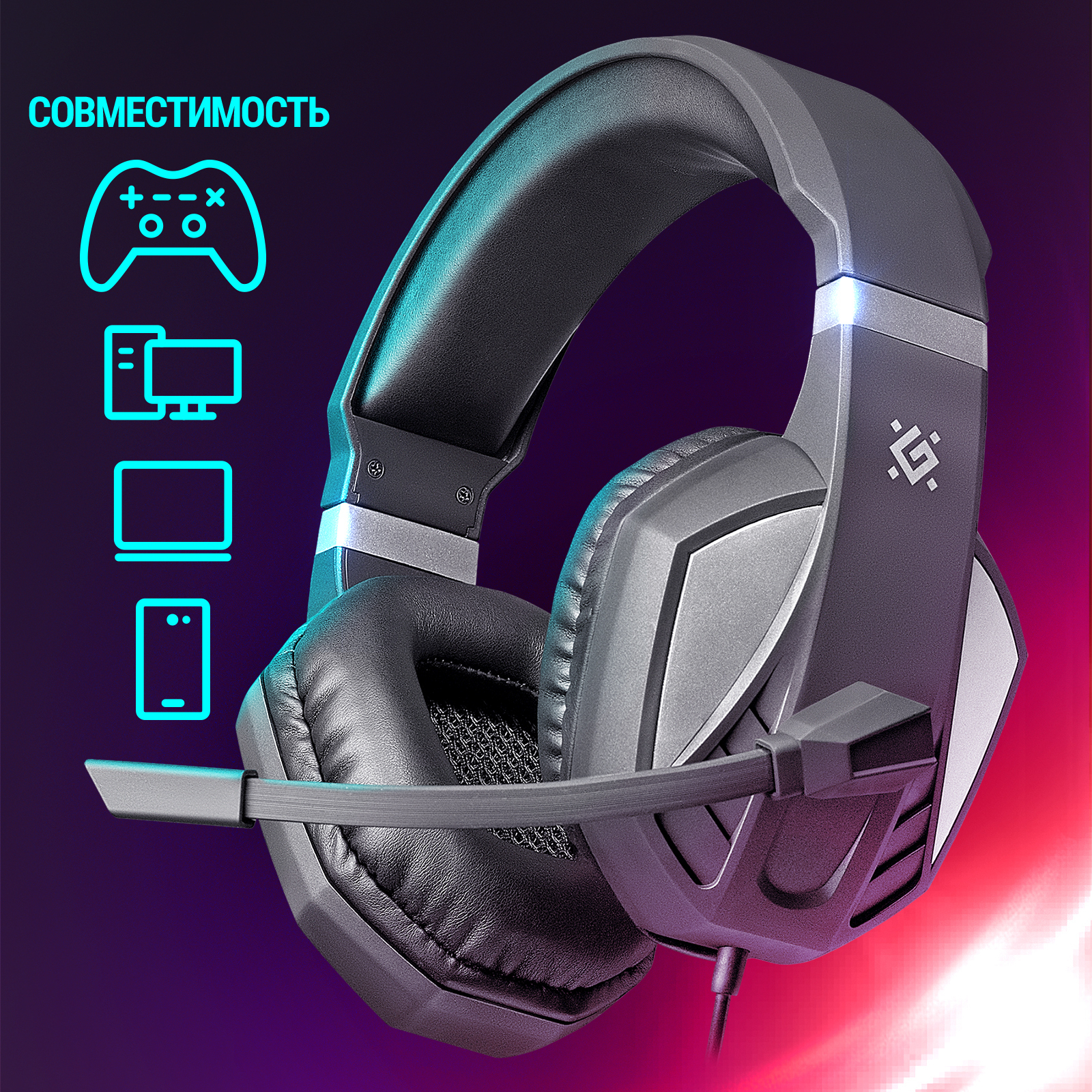 Игровые наушники Defender Zeyrox черный+серый, кабель 1.8 м. Уцененный товар