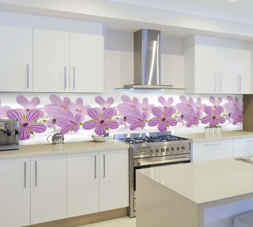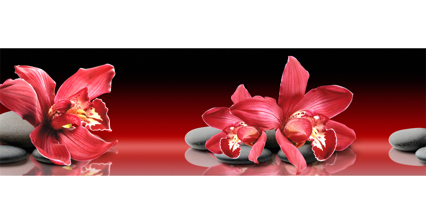 Кухонный фартук "Красные орхидеи на камнях 41" 2000*600мм, АБС пластик, фотопечать