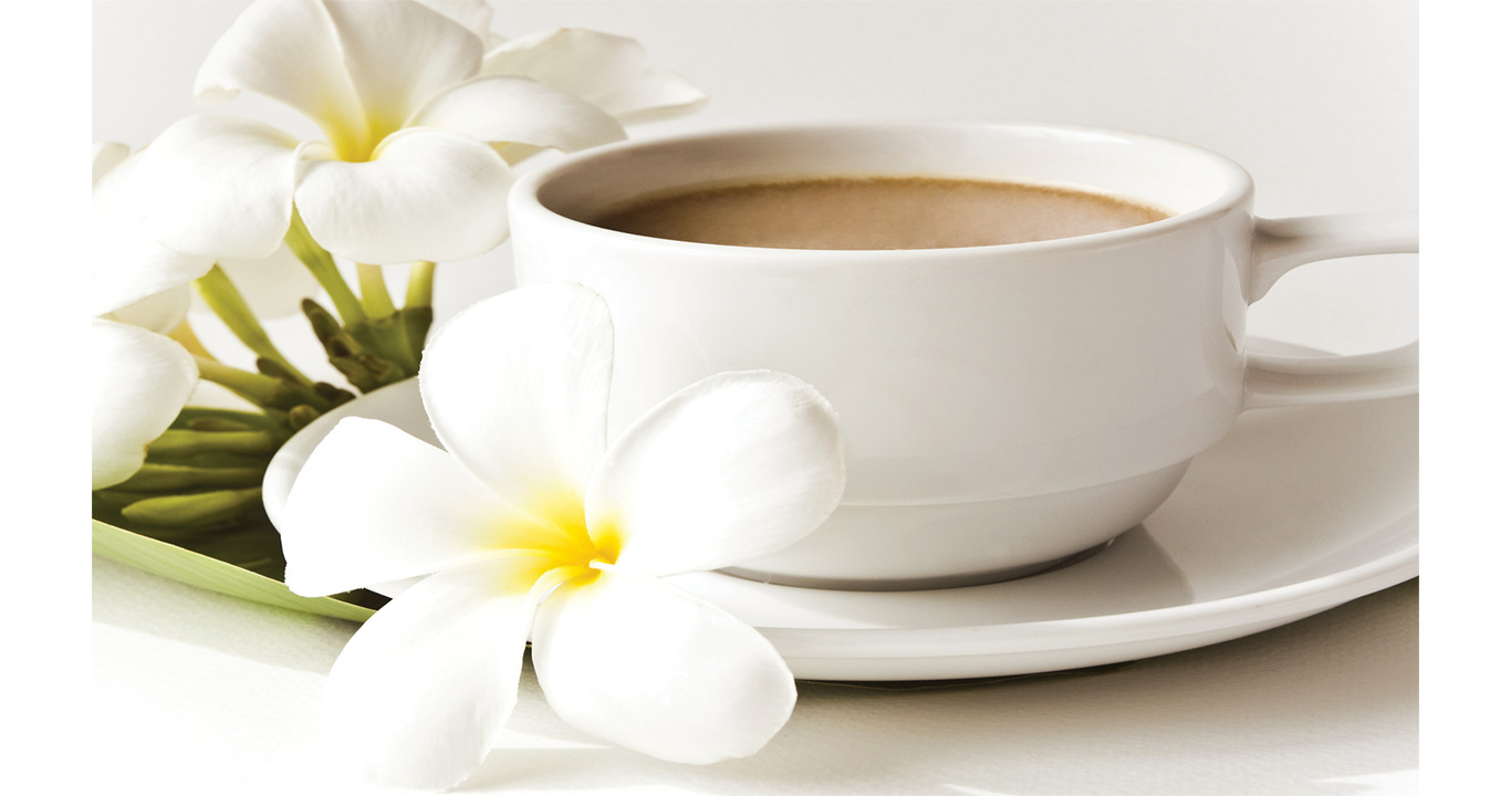 Кухонный фартук "Белая орхидея и кофе 6659" 1000*600мм, АБС пластик, фотопечать