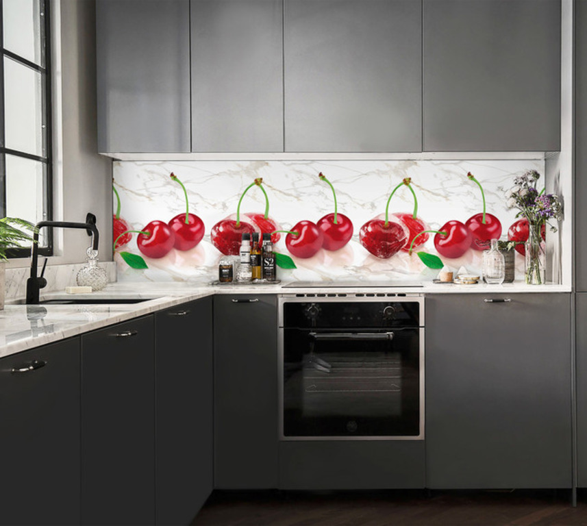 Кухонный фартук "Вишня" 2000*600 мм, АБС пластик, термоперевод