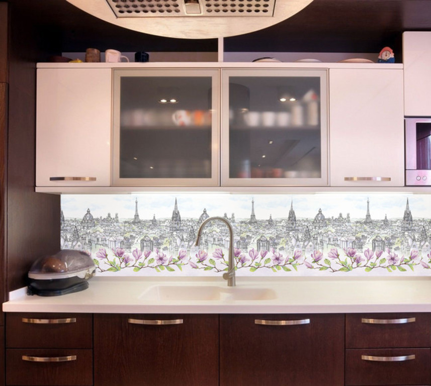 Кухонный фартук "Городские зарисовки" 3000*600 мм, АБС пластик, термоперевод