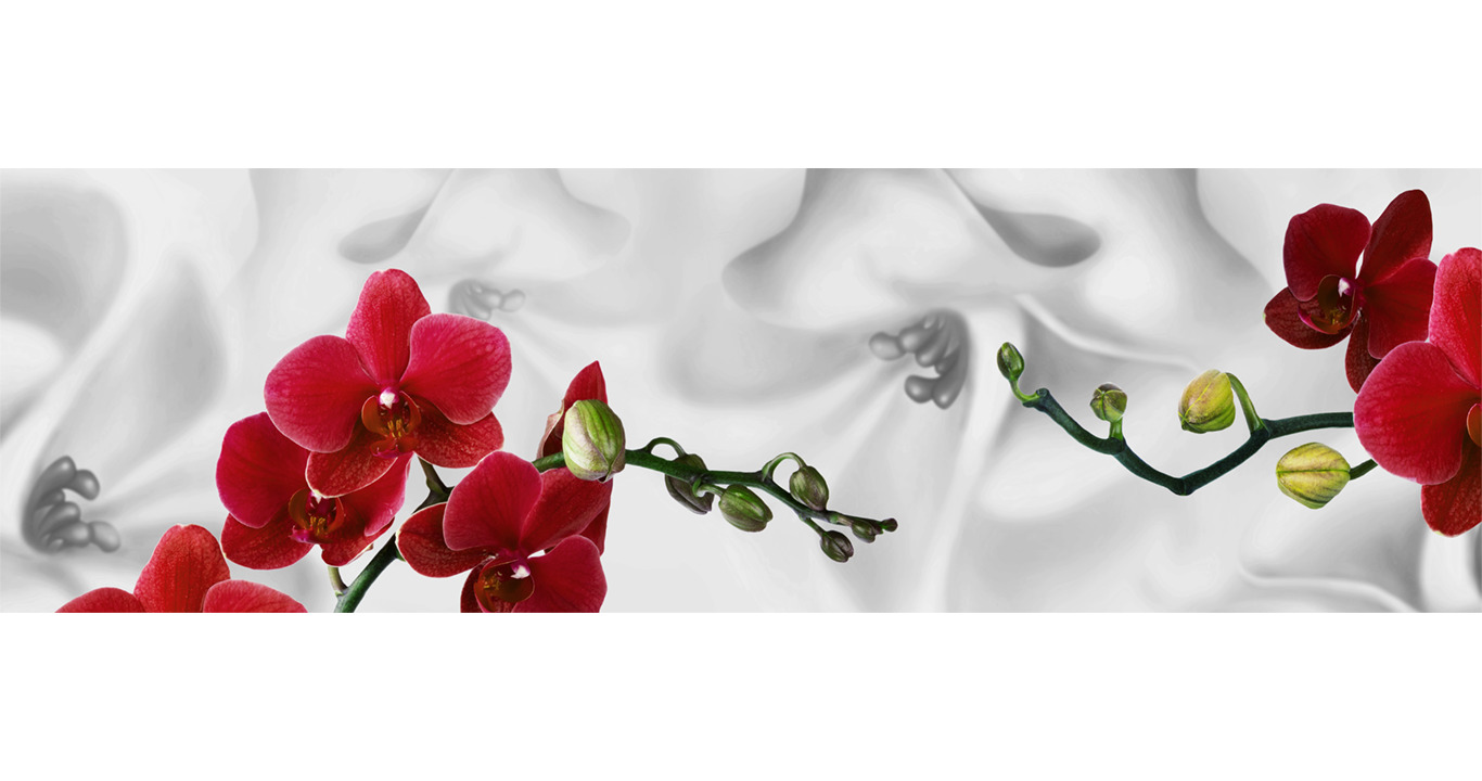 Кухонный фартук "Красные орхидеи 91" 2000*600мм, АБС пластик, фотопечать