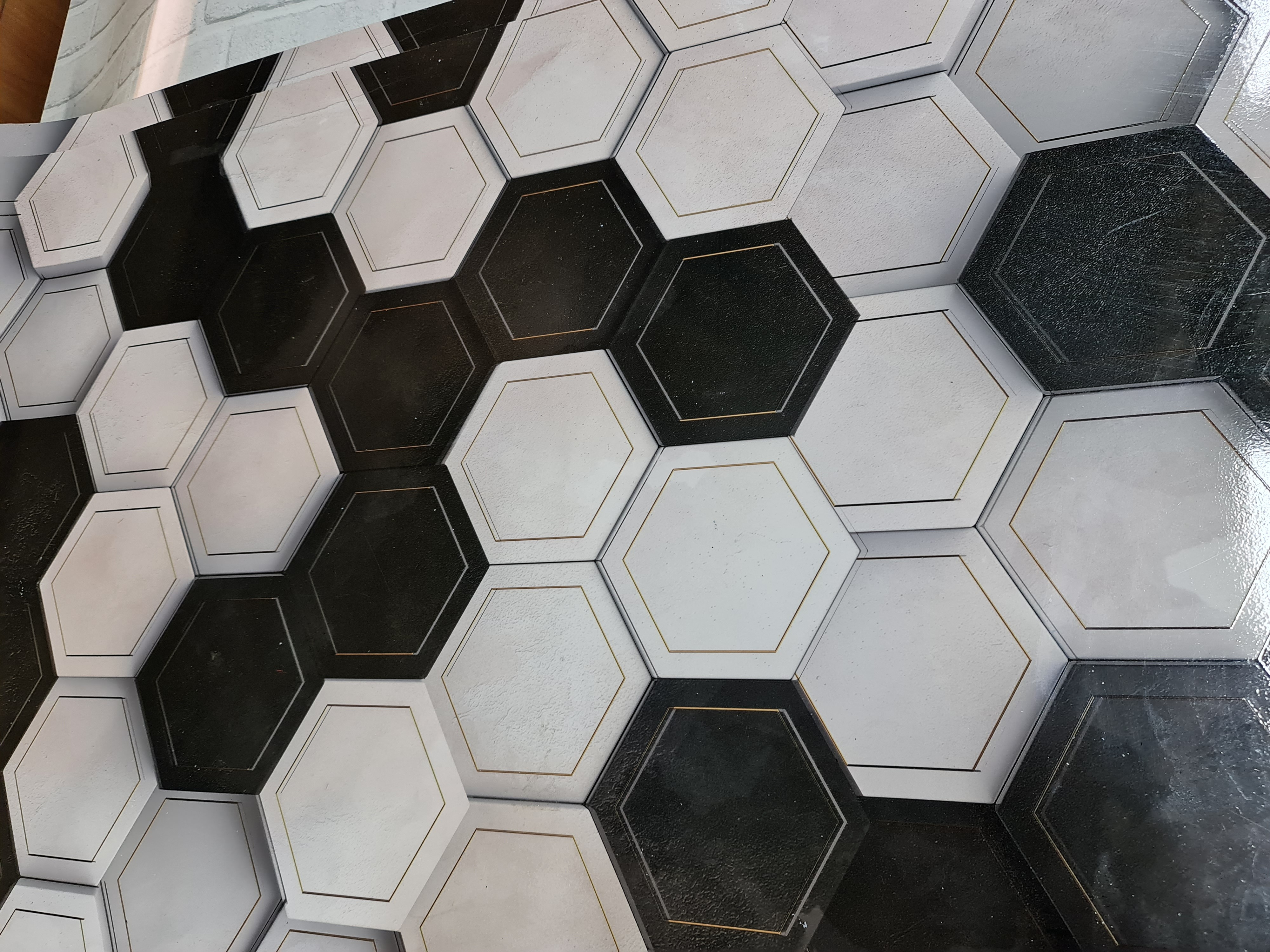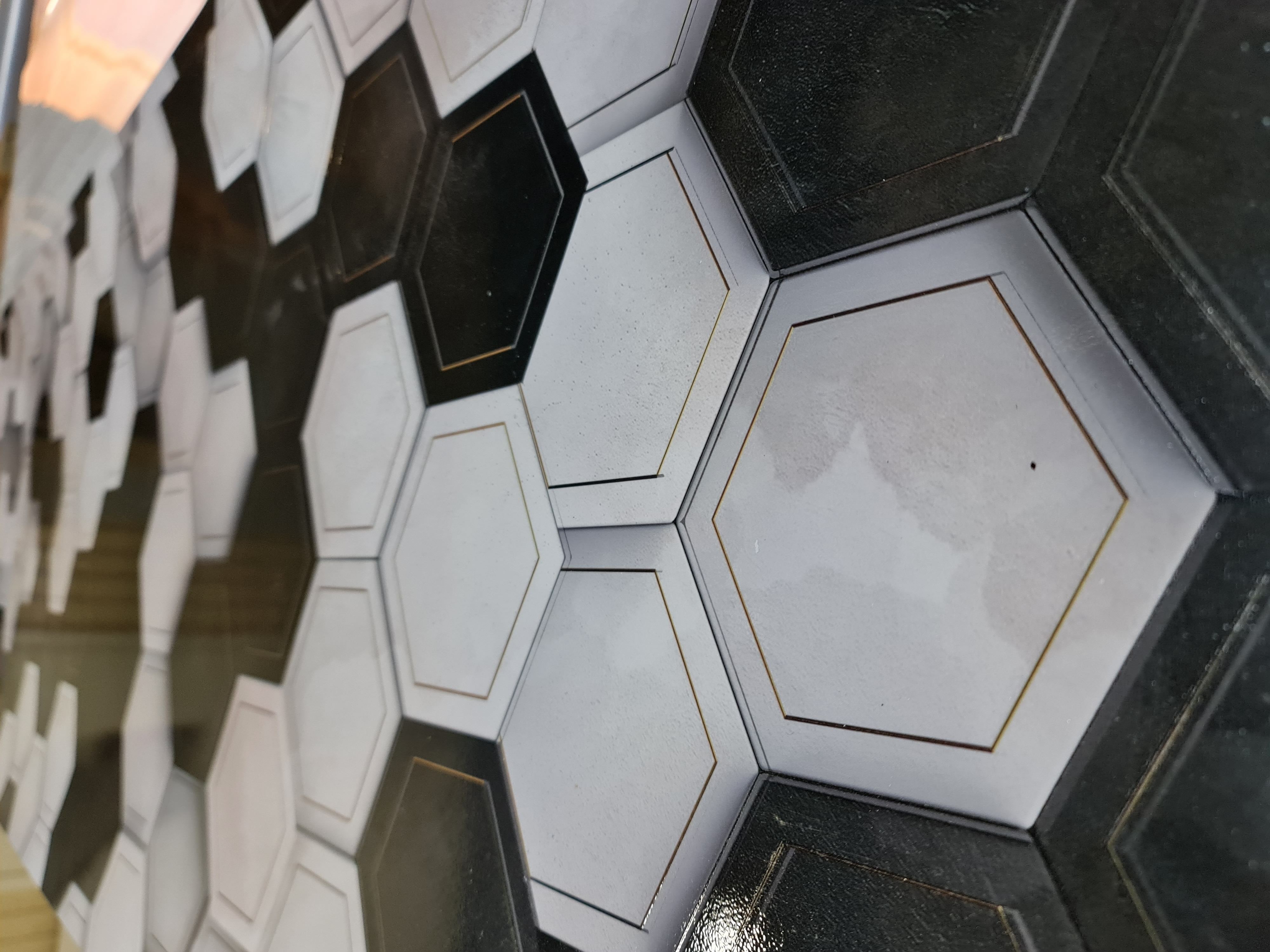 Кухонный фартук "Соты черное&белое" 3000*600мм, АБС пластик