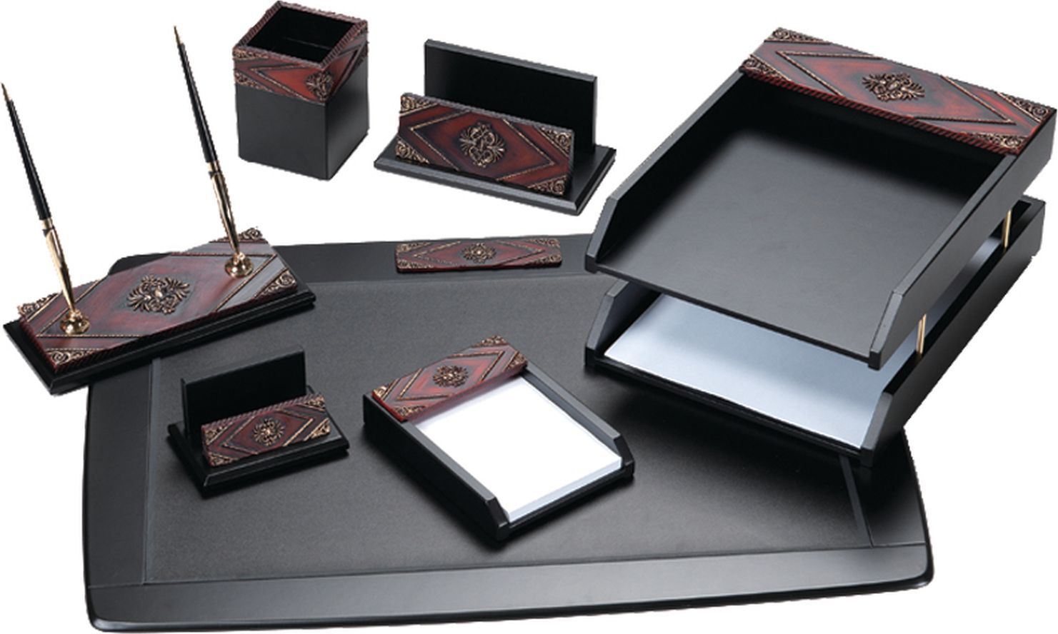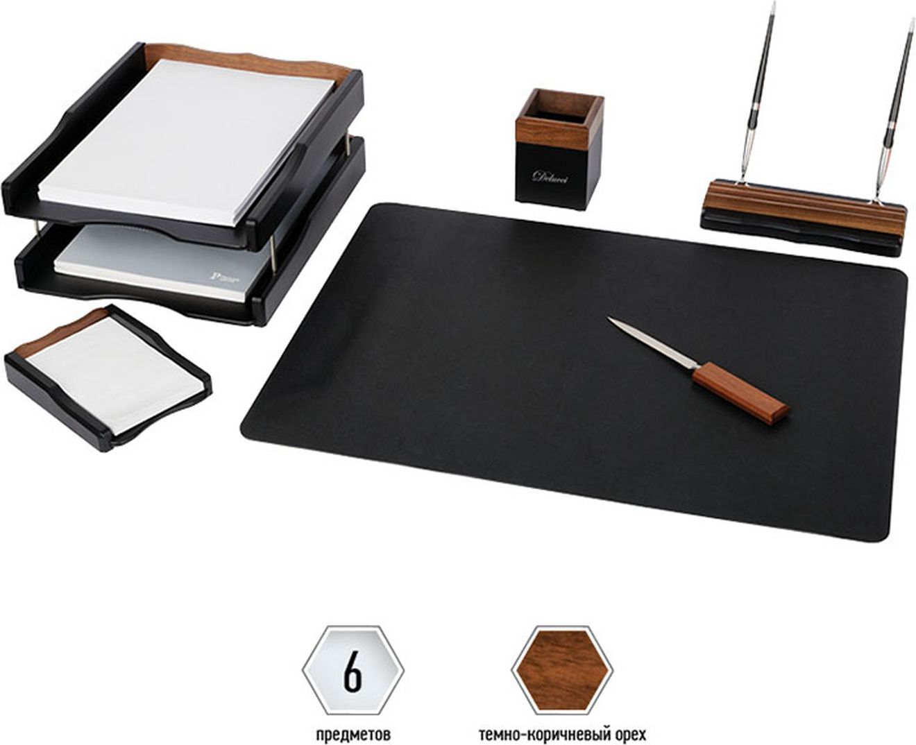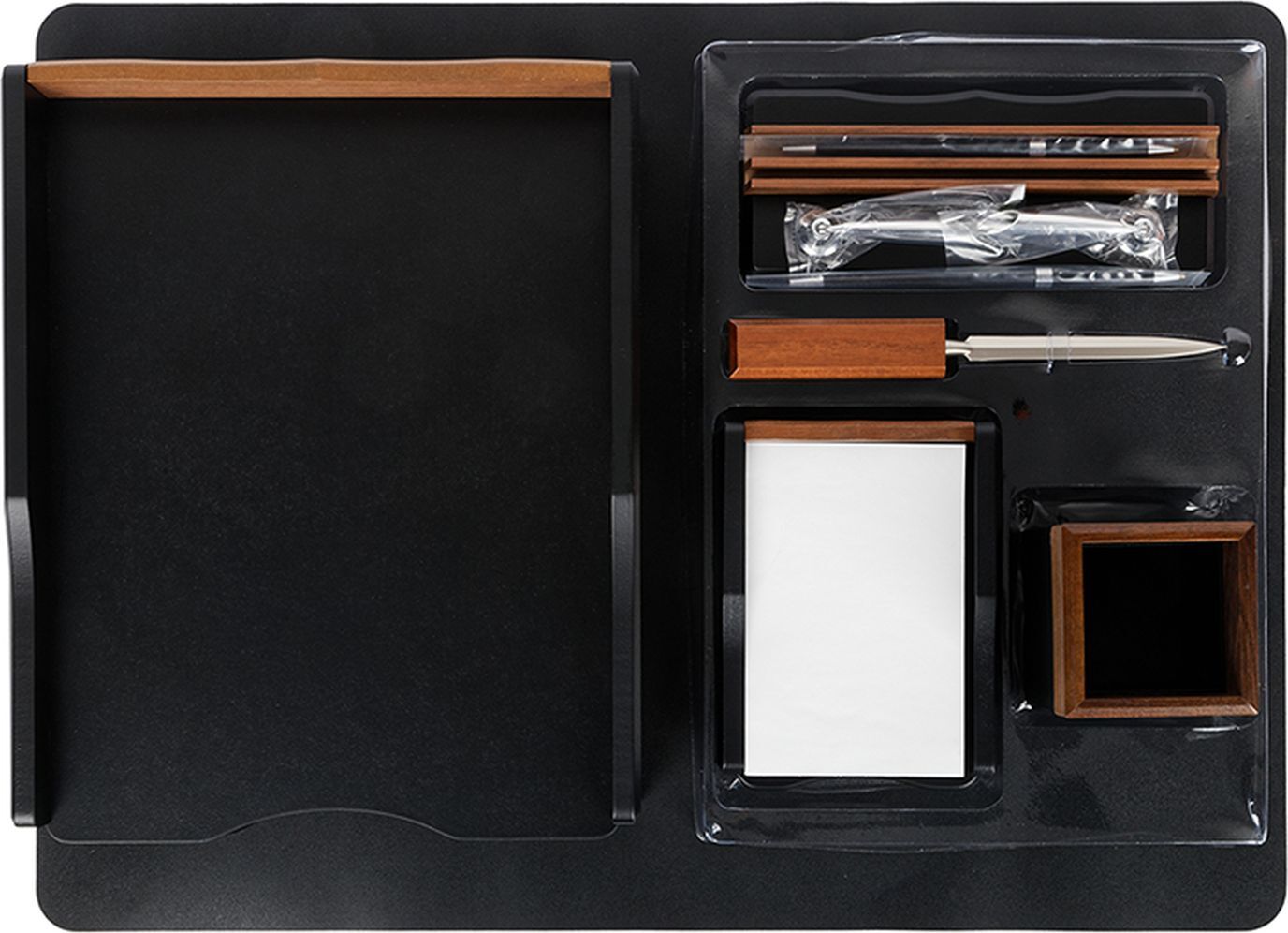 Набор настольный Delucci 7 предметов, черный, красное дерево/декоративный камень