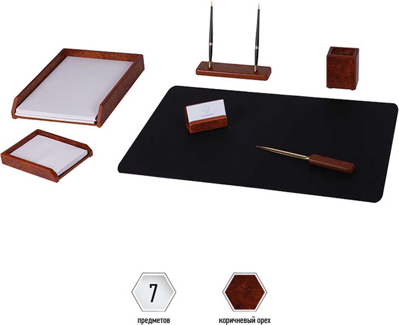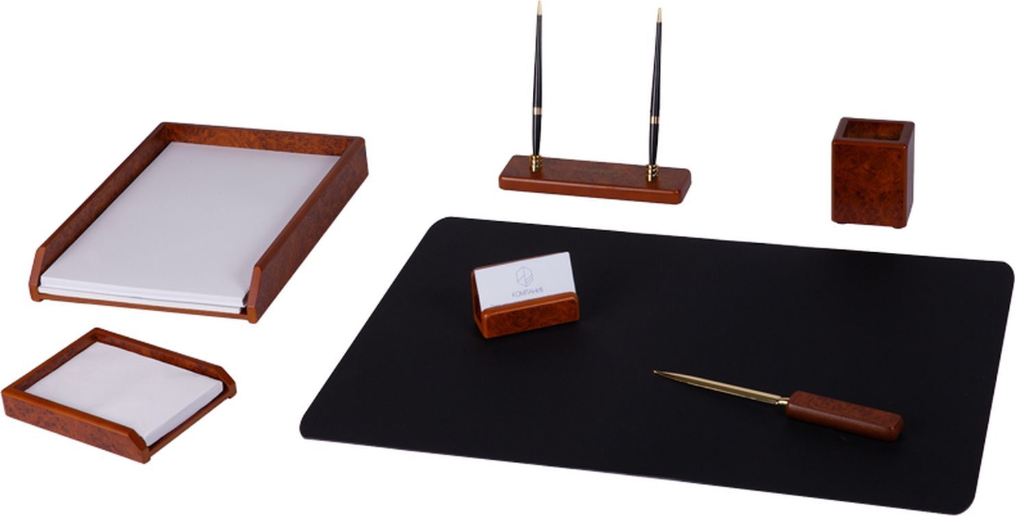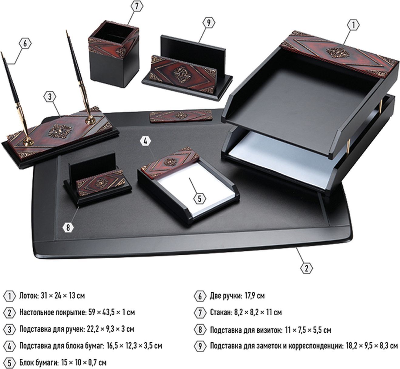 Набор настольный Delucci 7 предметов, черный, красное дерево/декоративный камень