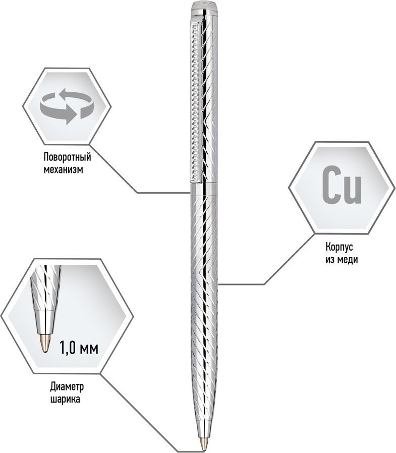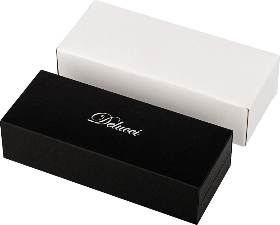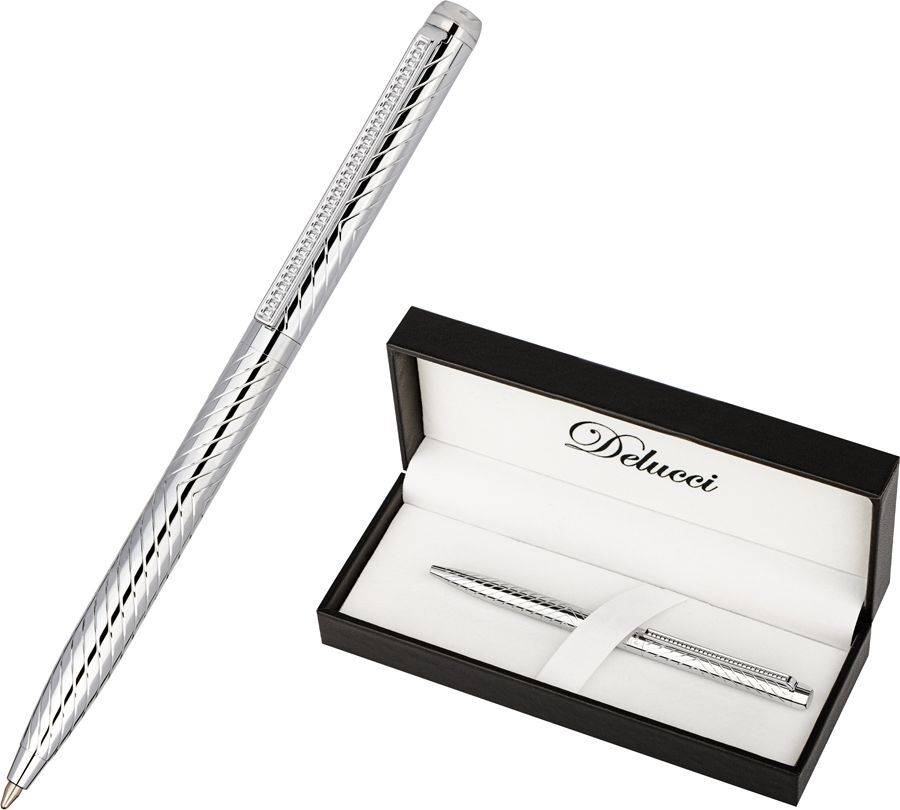 Ручка шариковая подарочная Delucci Argento, синяя 1 мм, корпус цвета серебро, кожаный футляр